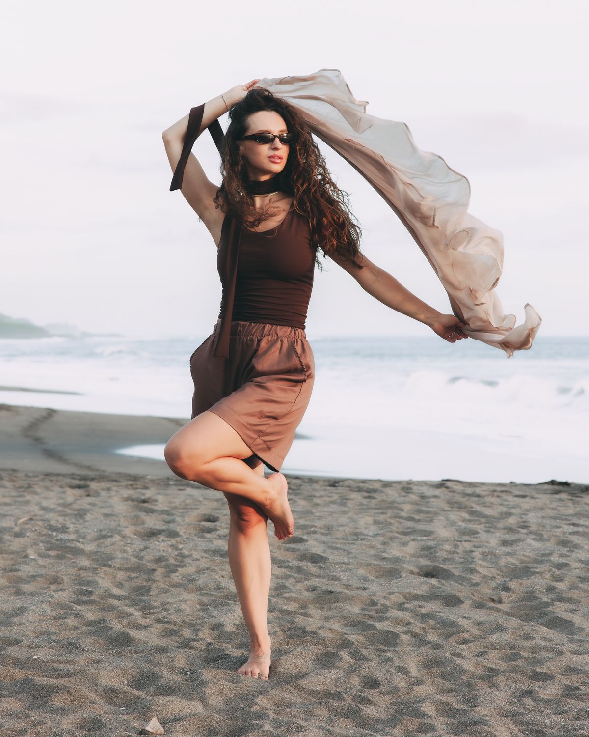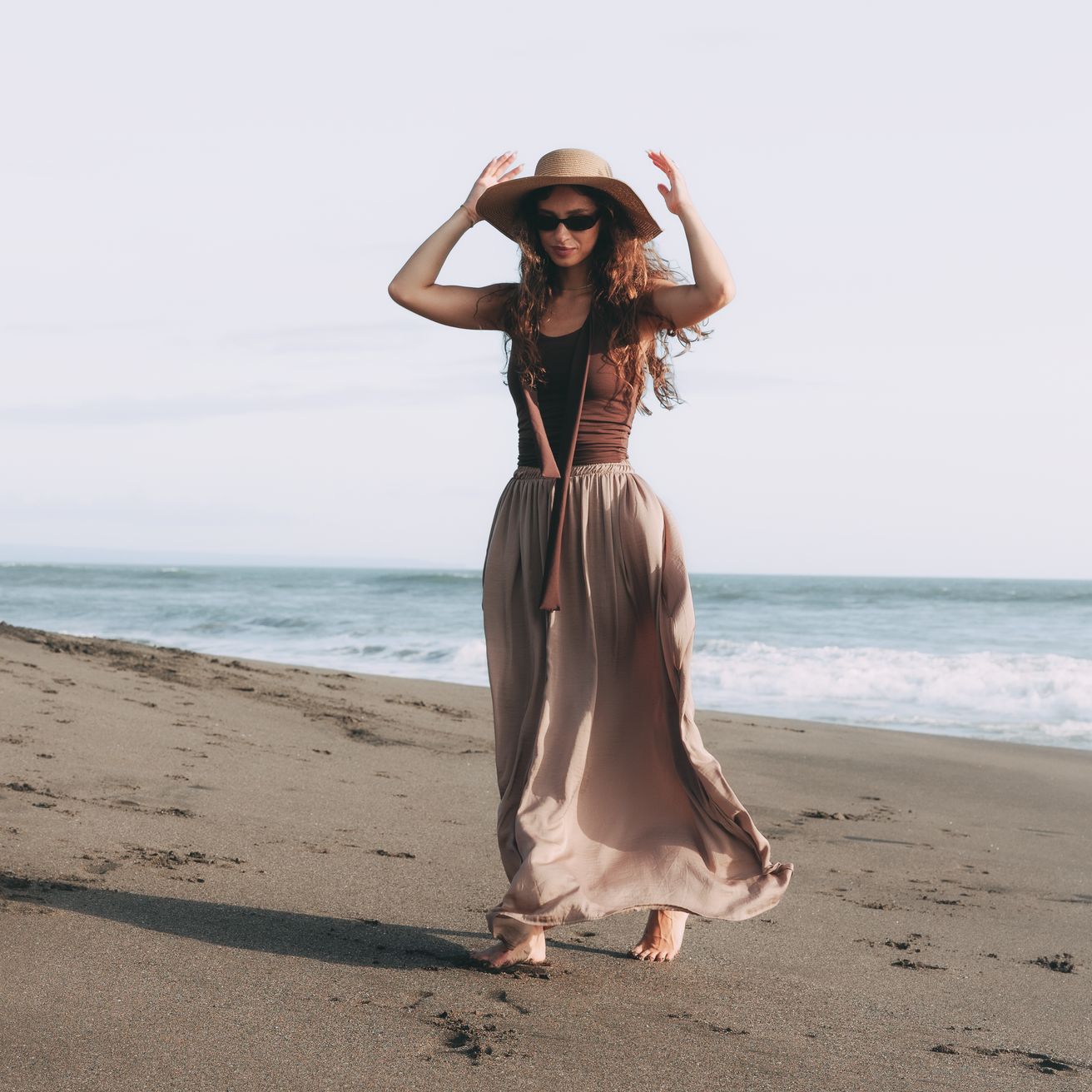 Tento outfit je naší srdeční záležitostí a čistou esencí nespoutaného Bali. Propojili jsme v něm luxusní maxi sukni Reta s rafinovaným topem Adia s odhalenými zády. Zkombinujte k nim i naši stylovou tašku Leya a jste připravena vyrazit do ulic. Vytvořili jsme tak harmonii, která vám dodá naprostou jistotu na důležité schůzce i při uvolněném nedělním brunchi. A když letní podvečer mírně ochladne? Stačí přes ramena nonšalantně přehodit top Atai.