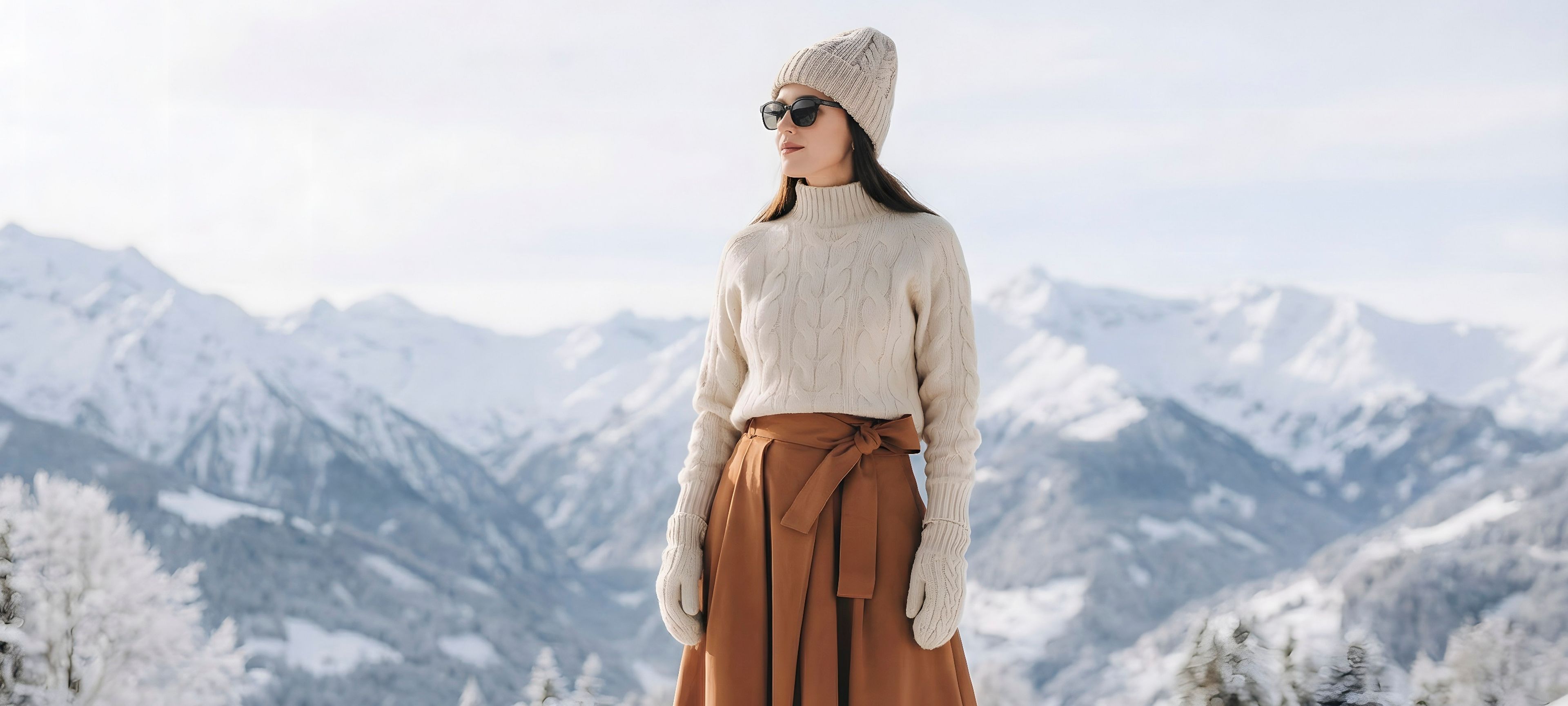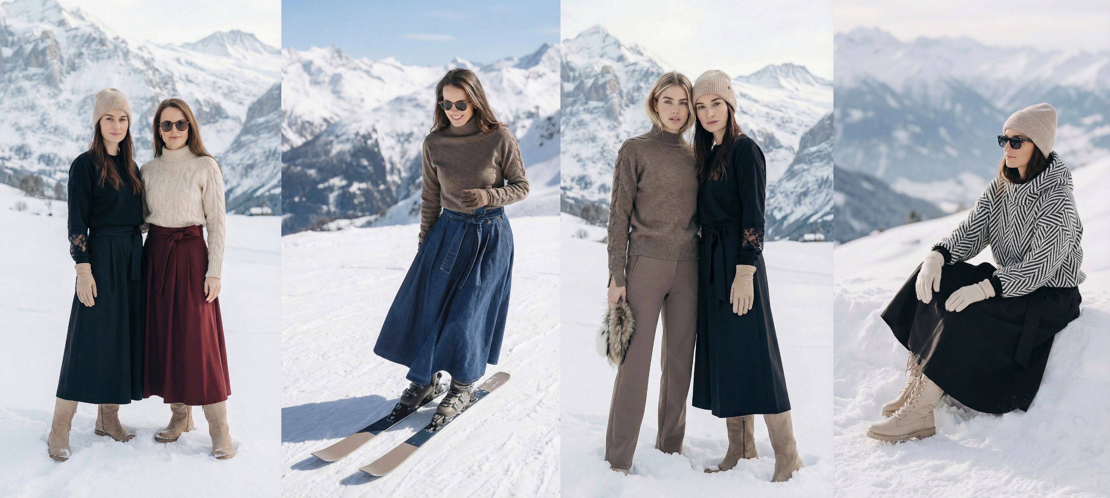 Hluboká vínová barva sukně vytváří nádherný a luxusní kontrast s čistě bílým sněhem. Aby byl look dokonalý a vy se cítila jako v bavlnce, doplnili jsme ji naším svetrem Amea Nude. Ten je ztělesněním jemnosti, hřejivosti a nadčasového stylu.