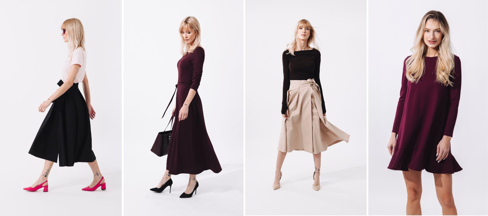 Tento minimalistický urban outfit v sobě spojuje ležérnost i sofistikovanou eleganci a představuje dokonalý základ pro moderní městský šatník. Hlavním pilířem jsou denimové kalhoty Luna ve světlém odstínu, které díky svému uvolněnému střihu zajišťují celodenní komfort a skvěle kontrastují s černým tričkem Kimani, jehož výrazné členění na rukávech dodává celku moderní strukturu a netradiční siluetu. Celý look pak sjednocuje a povyšuje na novou úroveň černý bomber Femi, jenž svou minimalistickou estetikou dodává outfitu potřebný „edge“. Pro dosažení autentického stylu z fotografií doporučujeme kombinaci doplnit výraznými brýlemi, elegantními pantoflíčky na podpatku a kabelkou s kovovými detaily, čímž vytvoříte nadčasový outfit, který vás sebevědomě doprovodí od ranních schůzek až po večerní drink.