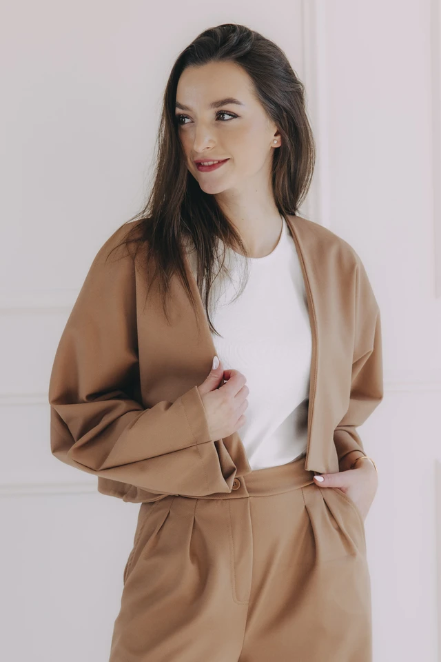 - Střih: Blejzr, který může sloužit také jako krátké sako bez zapínání, neboli cropped sako, je jako stvořený pro vrstvení. Délka je ideální ke kalhotám a sukním s vysokým pasem.