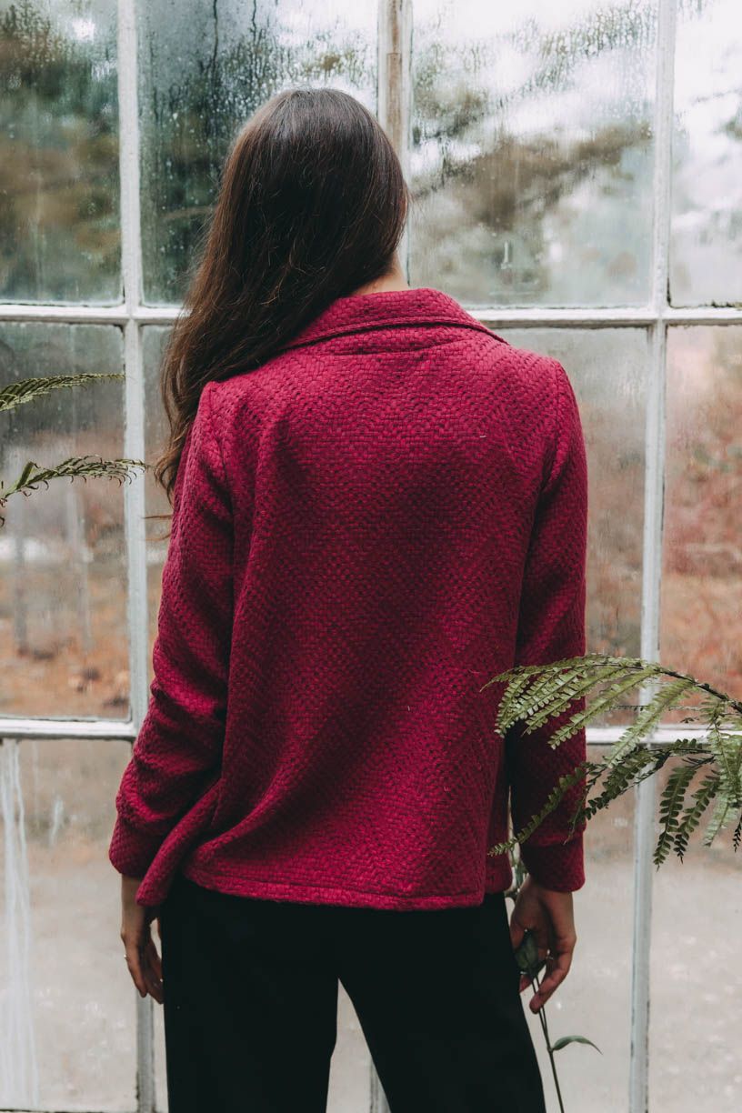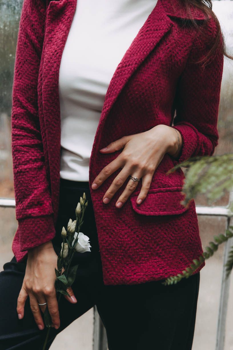 Blejzr Asili je na první pohled elegantní klasik, ale jakmile se na něj podíváte lépe, vidíte, že si tak trochu dělá věci po svém. Texturovaný materiál, který vypadá jako propletená struktura vláken, přidává hloubku a originalitu.