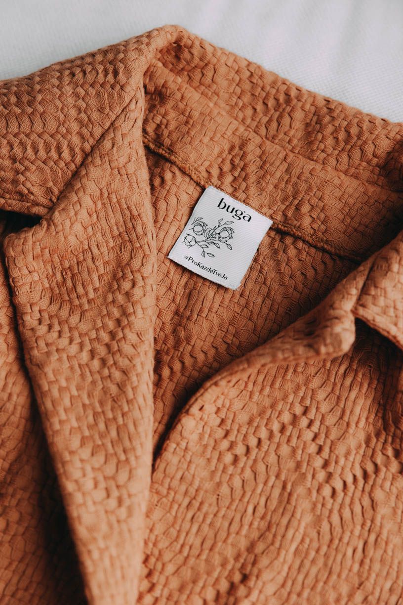Blejzr Asili je na první pohled elegantní klasik, ale jakmile se na něj podíváte lépe, vidíte, že si tak trochu dělá věci po svém. Texturovaný materiál, který vypadá jako propletená struktura vláken, přidává hloubku a originalitu.