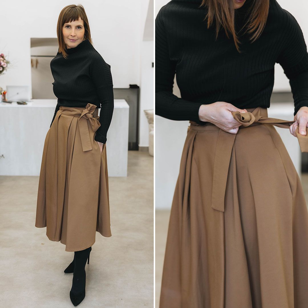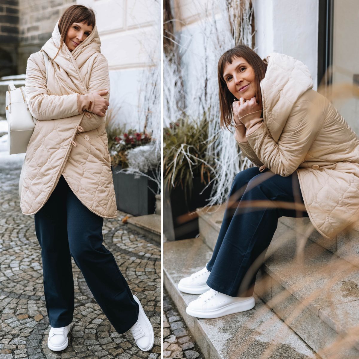 „Mikča má božský střih a úžasný materiál. Kalhoty jsou pohodlné, nemačkavé a mají šmrnc. A když vyměním lodičky za ležérní tenisky, můžu vyběhnout s kámoškou na víno a pokec,“ těší se. Cestou Páju bude hřát náš oblíbený Zunu kabát.