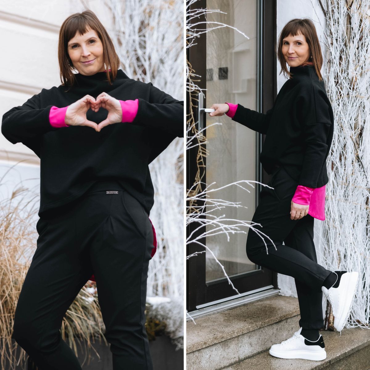 Růžovo-černá kombinace Páju podle jejích slov dokonale charakterizuje – milovnice černé, která výraznou barvou dodá outfitu pomyslnou tečku.