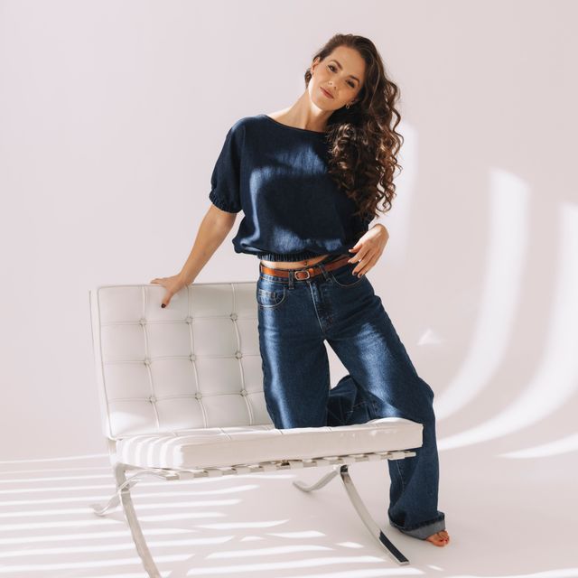 💬 Styling tip: Volte výraznější spodní část (světlý denim, detaily, kapsy) a jednodušší top – krásně se tím vyrovná silueta.