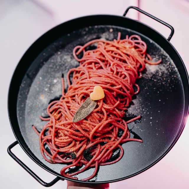 Když nás čeká ten zamilovanej svátek, tak jsem obarvila špagety vodou z červené řepy. :)