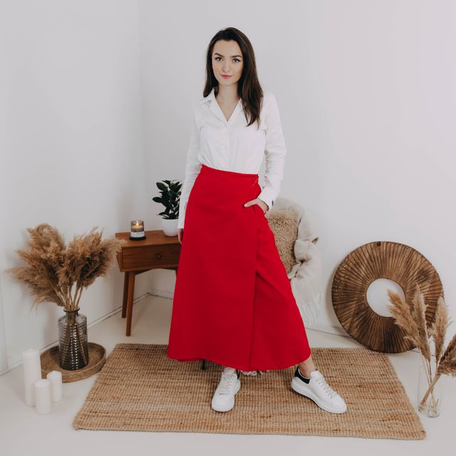 (no, v první řadě pro něj, samosebou), ale nechcete si tenhle zamilovaný den připadat úplně „nežensky“? Nakisai je kalhotová sukně plná důvtipu a ženská je teda až kam. Sáčko Aris v úplně stejně pravé červené můžete směle odhodit, až vám pod přílivem komplimentů začnou červenat i tváře. Protože crop top Aina je fakt top. Zčásti odhalená záda zaručeně odhalí jeho touhu po tom vás následovat, kam si zamanete. Ne, neptáme se, kam to bude…. Jo a ještě něco: Nezapomeňte na výrazný a hodně šťavnatý lesk na rty!