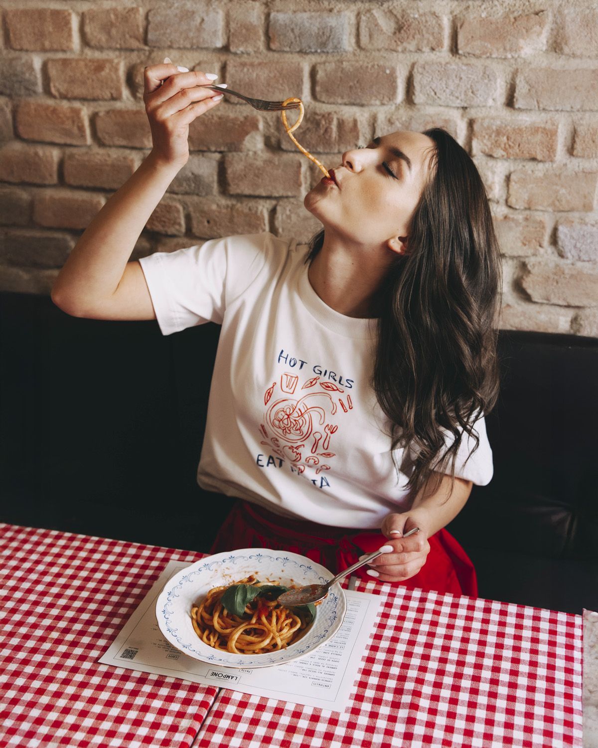 Tričko pro všechny, kdo vědí, že sacharidy nejsou vždycky nepřítel – a že radost z jídla patří k životu. Nosit na hrudi špagety je manifest proti dietám bez chuti i životu bez radosti. Protože někdy chcete být prostě „hot“ a jindy jen „hungry“. A někdy obojí.
