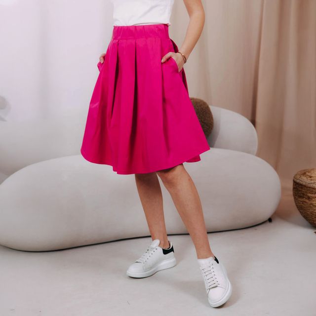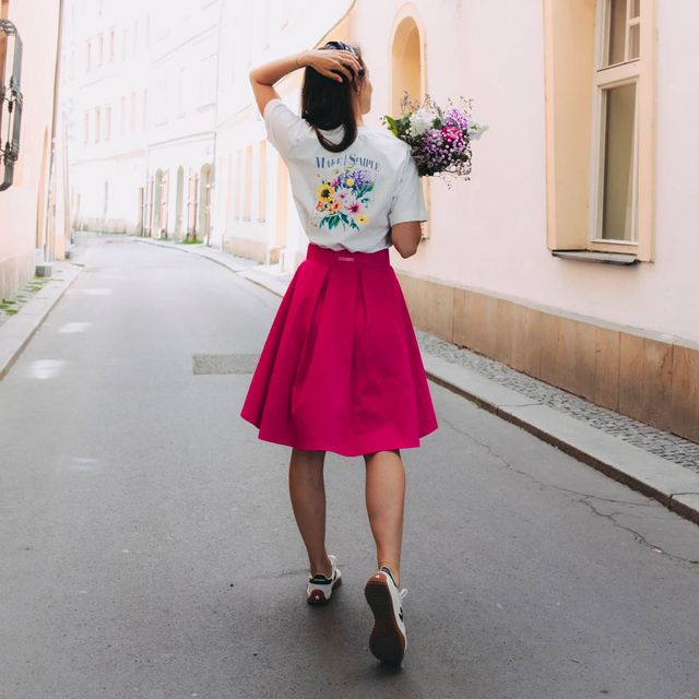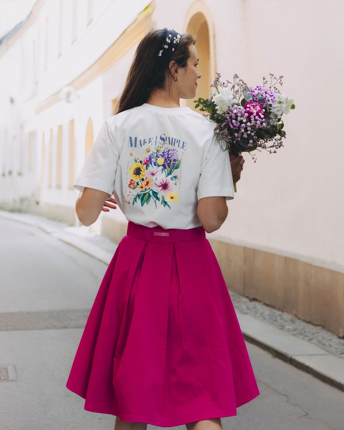 Outfit: tričko Mood White Make It Simple, sukně Malkia Short Hot Pink