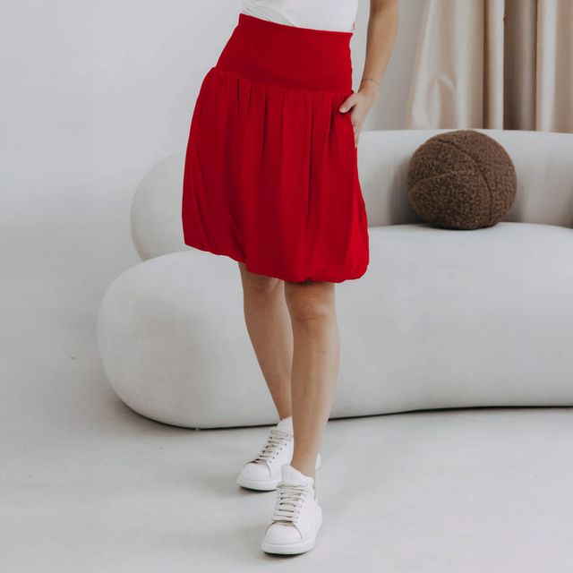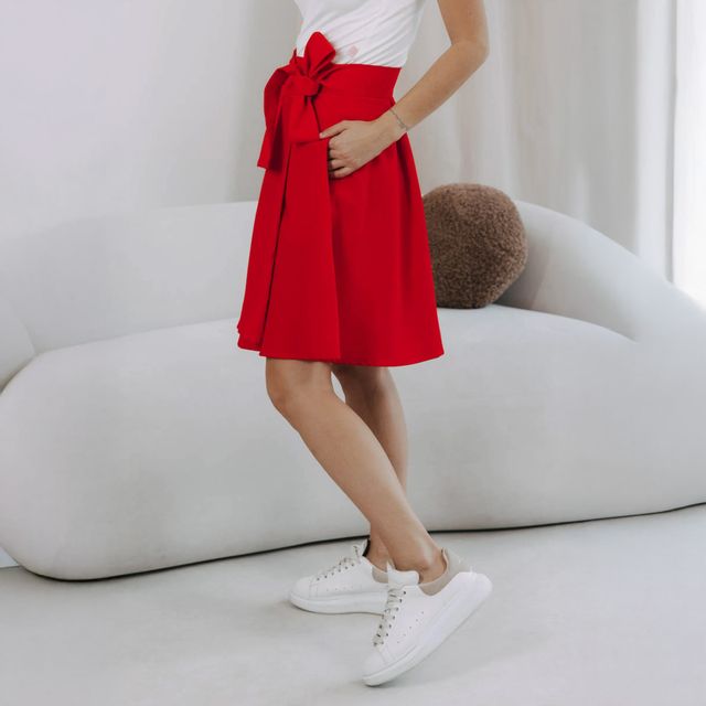 Outfit: tričko Mood White Pasta, sukně Mawe Short Red