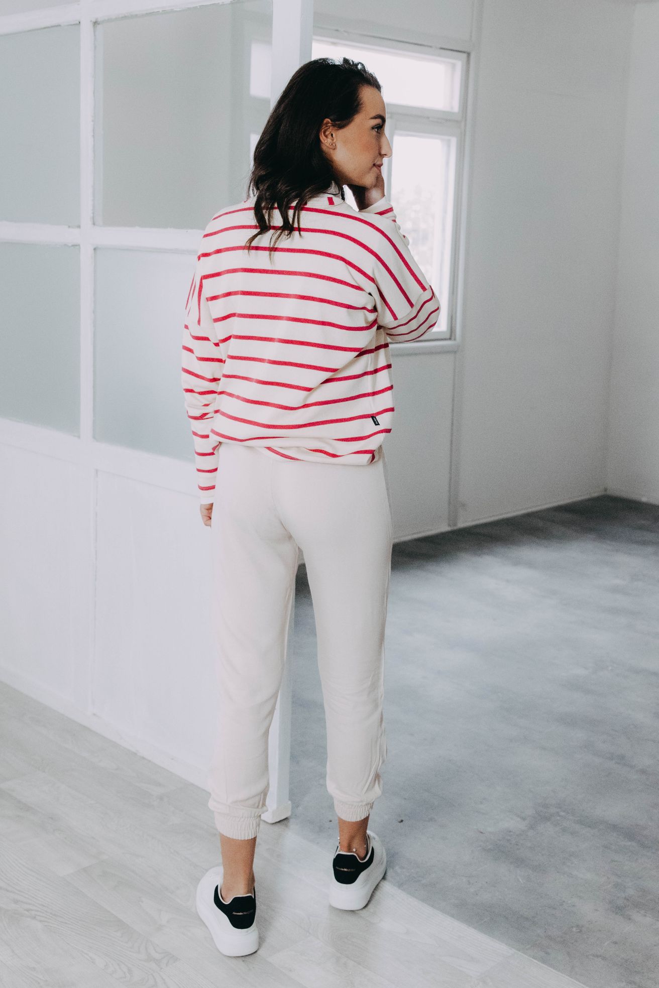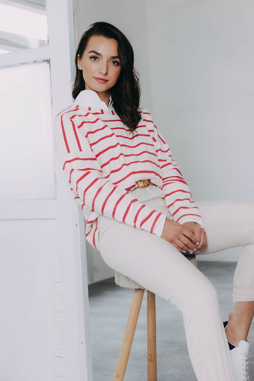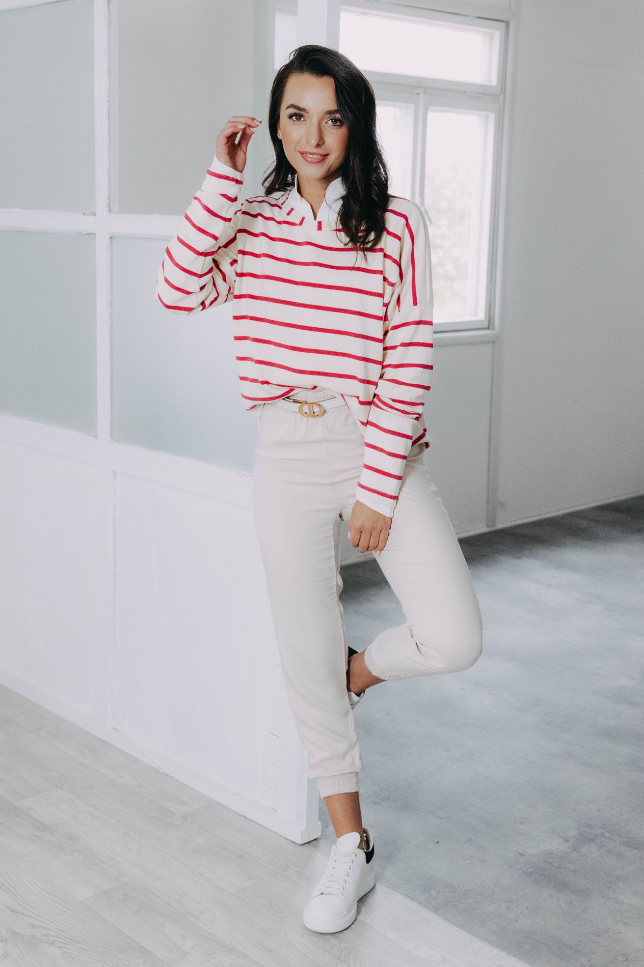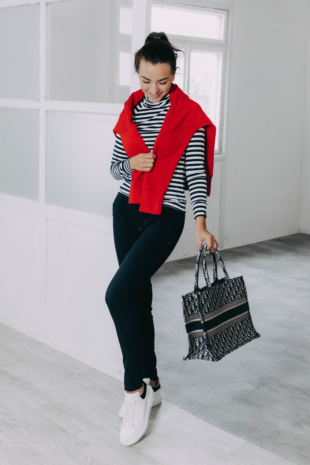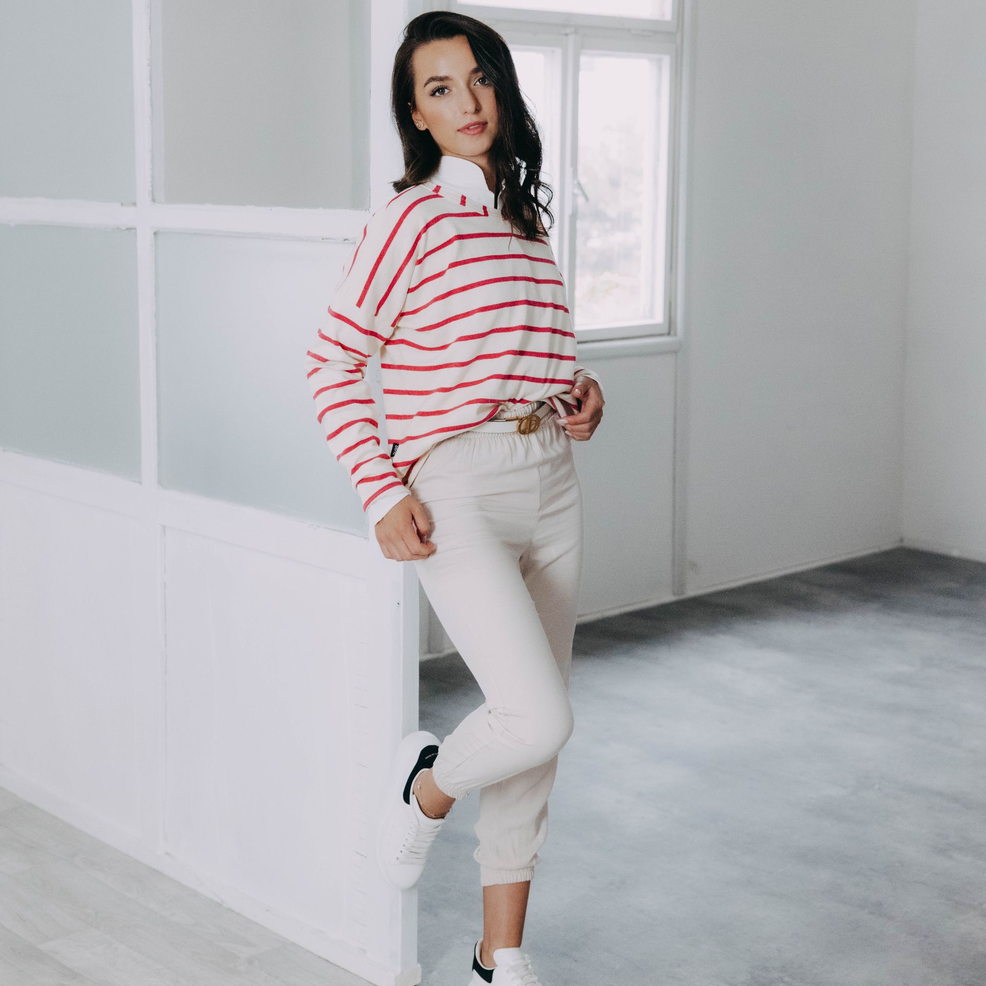 Královny šetřit nemusí, a to ani na barvách. Červený outfit s prvky sportovní elegance jasně prozrazuje, jakým sebevědomím žena oplývá, když zvolí takto nepřehlédnutelnou kombinaci. Široké nohavice kalhot Malika, nadčasový střih sáčka Chanya a suverénní proužky na tričku Gogo Elegance o vás řeknou vše. Tedy… téměř vše.
