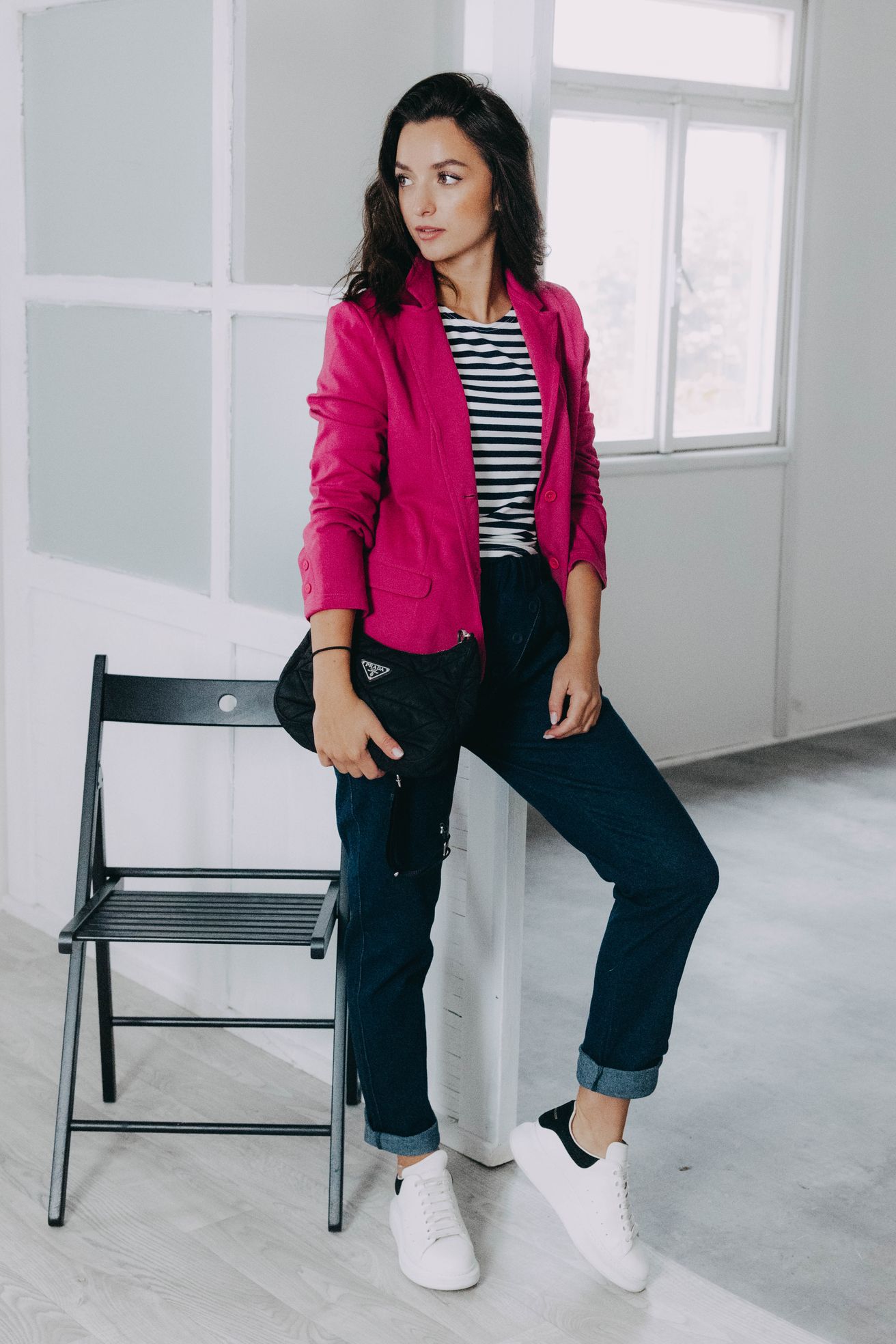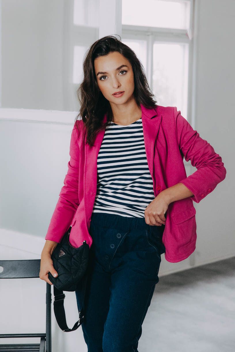 I v městské džungli je dobré si hlídat svoje teritorium. Denimovými kalhotami Reece, pruhovaným tričkem Kenda a nepřehlédnutelným sáčkem Chanya v hot pink barvě nebude pochyb o tom, kdo vládne městu a světu. Aspoň v módních kruzích. Nahoďte ležérní účes, úsměv a směle vykročte do středu všeho dění.