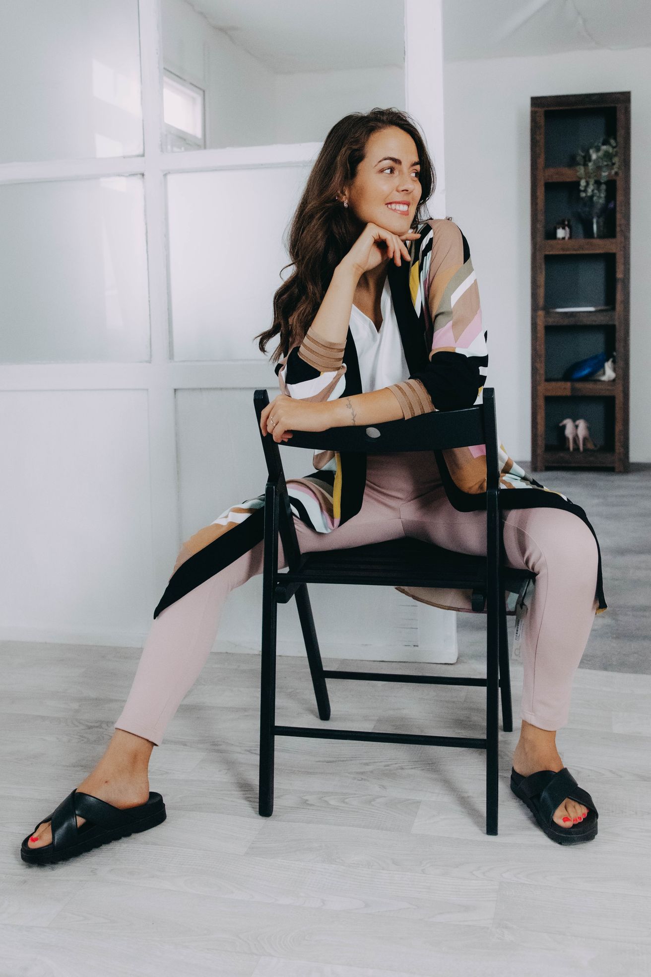 Chvílemi zasněná, jindy naplno dávající na odiv svou extrovertní povahu. Bezstarostná duše s vizionářským nadšením je schovaná v outfitu volného trička Safu a pudrových kalhotách Elli Short. Punc bohémství jí dodává kardigan Kito Shapes – libůstka pro minimalistky, ale i milovnice odvážnějších vzorů v oversized střihu.