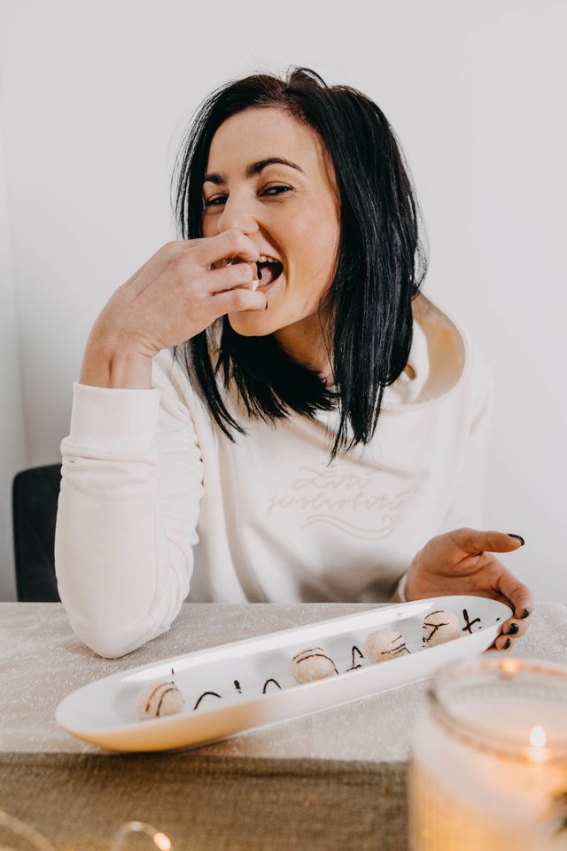 Od té doby, co jsme je poprvé doma s mamčou zkusily, je děláme pokaždé do Vánoc hned několikrát. Vždycky se po nich totiž nějak záhadně zapráší. Super je, že jsme ještě nepotkali člověka, kterému by tohle cukroví nechutnalo – kombinace slaného karamelu, čokolády, soli a pistacií baví totiž snad každého.”