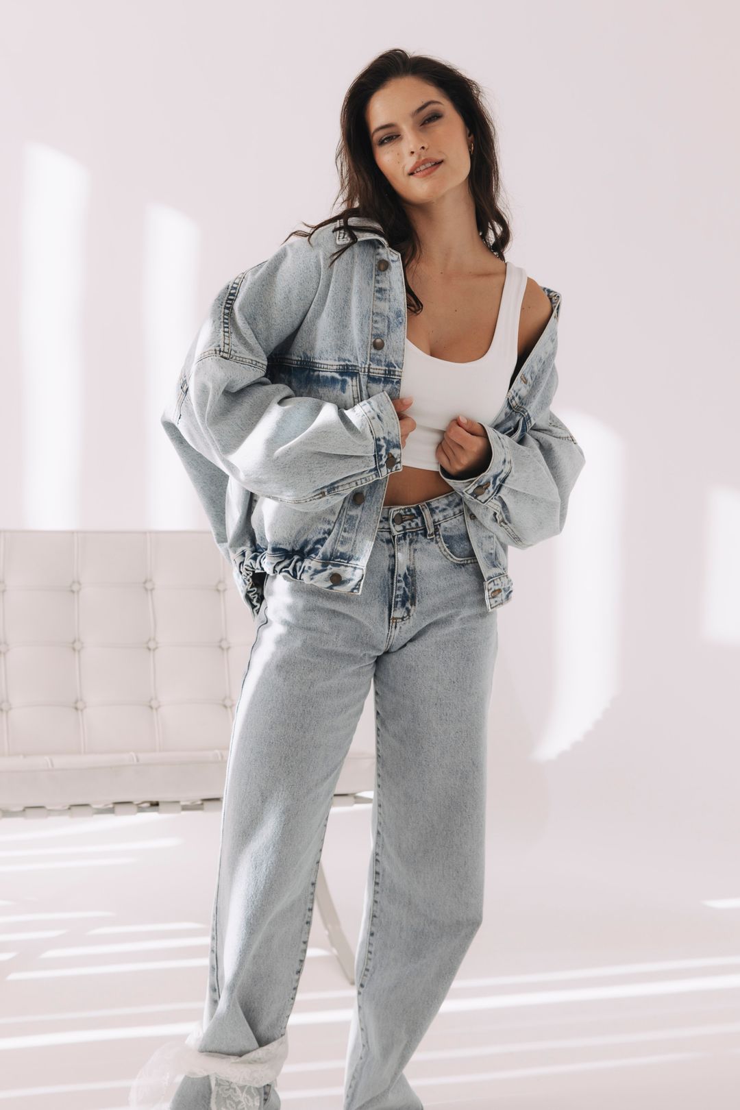 - Celodenní look: Noste ji přes basic tričko a džíny – třeba naše Luna Deep Jeans nebo Nola Soul Jeans – pro dokonale sladěný all denim outfit, který nikdy nevyjde z módy.