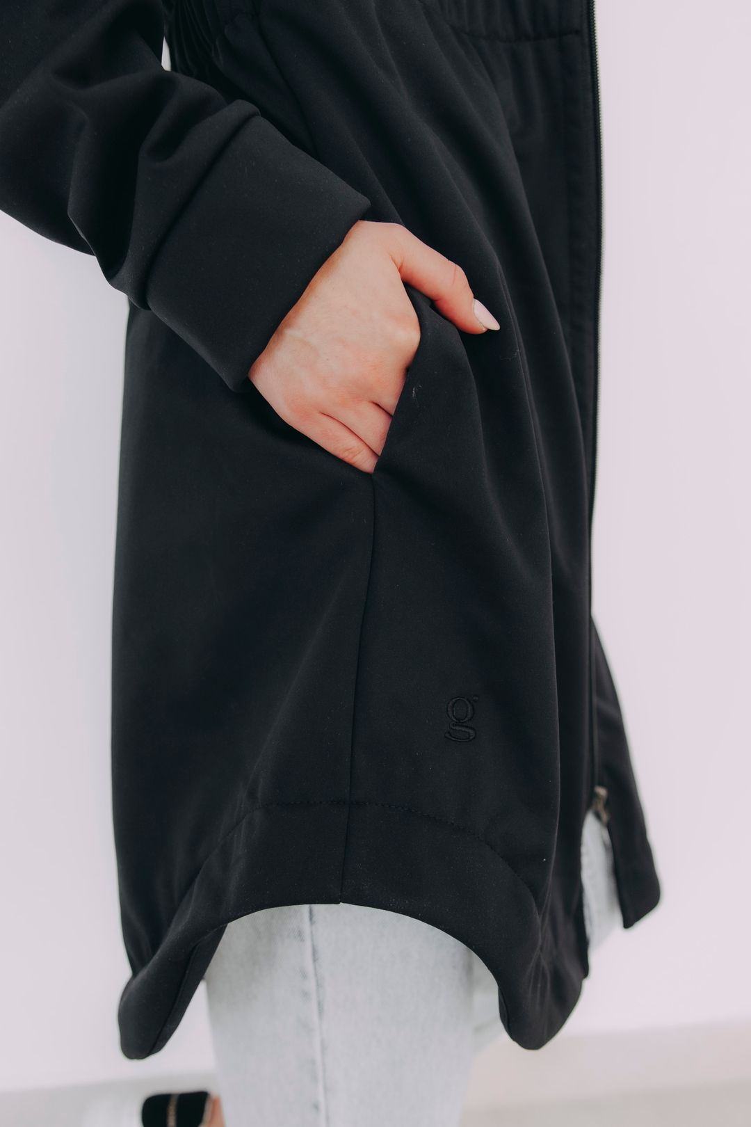- Střih a detaily: Zapomeňte na nudné střihy! Bunda má zaoblený spodní lem, který elegantně splývá až nízko pod zadek. Široká guma v pase vám vyčaruje krásnou postavu a díky všitému zipu po celé délce se pohodlně obléká. A abychom nezapomněli na praktičnost, má bunda i nenápadné, ale dostatečně prostorné boční kapsy na zip, kam schováte vše potřebné.