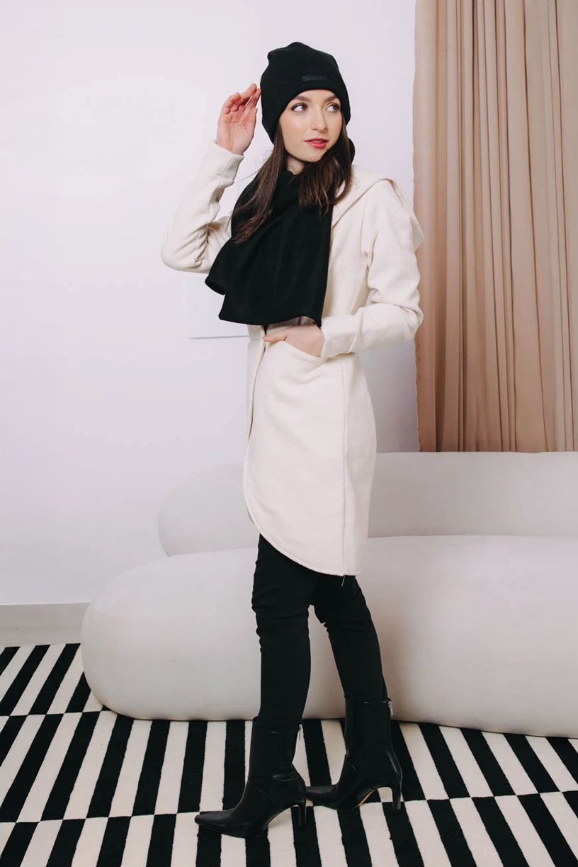 Černá minimalistická čepice vás spolehlivě zahřeje a ozdobí během chladných zimních dní.