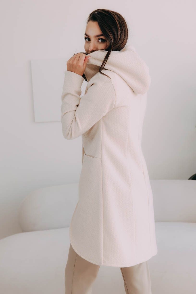 Hravou, ale decentní kapuci přehodíte přes lokny, když zrovna foukne, ruce a pár drobností schováte do šikovně skrytých kapes. Krásně ženský střih podtrhne vaši siluetu a krémová barva je natolik univerzální, že kabátek vynosíte jak ve stylu kapsulovém, tak s celou řadou vašich oblíbených barev.