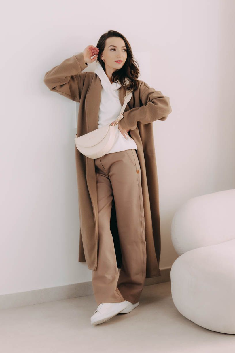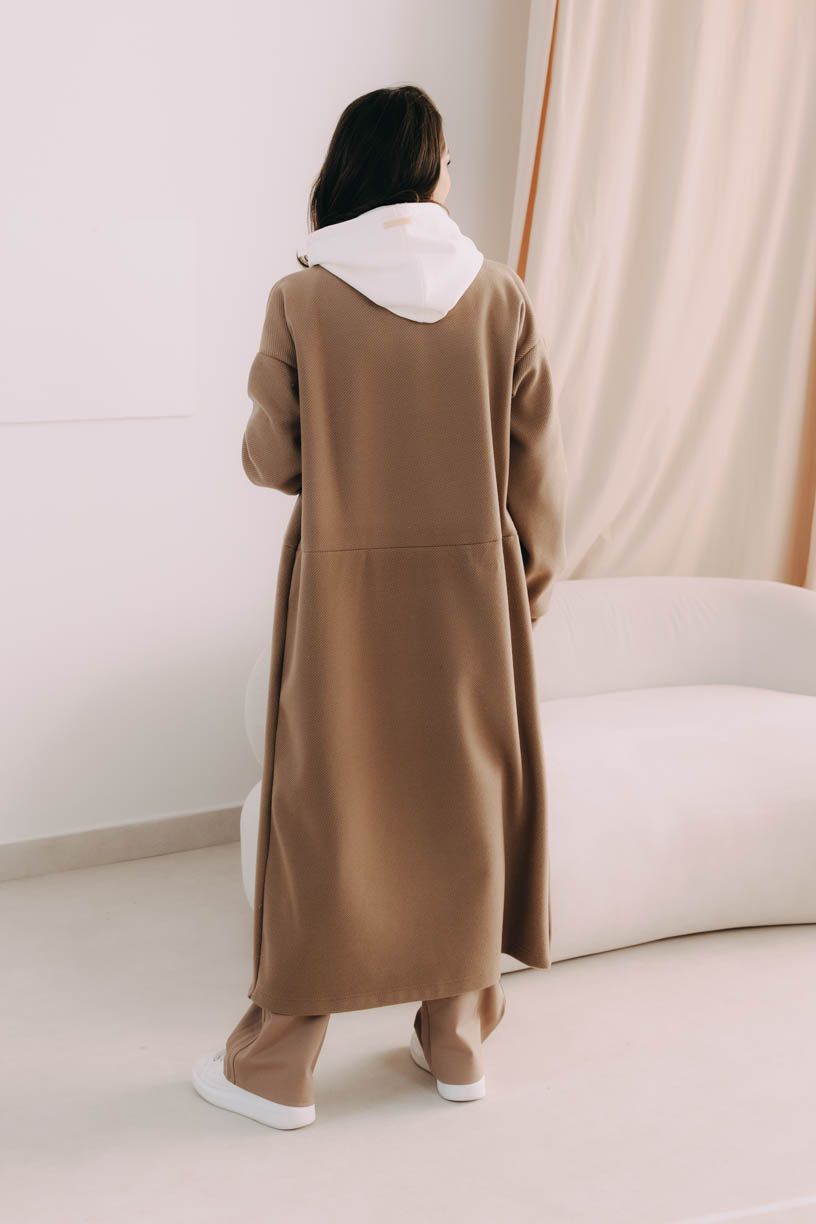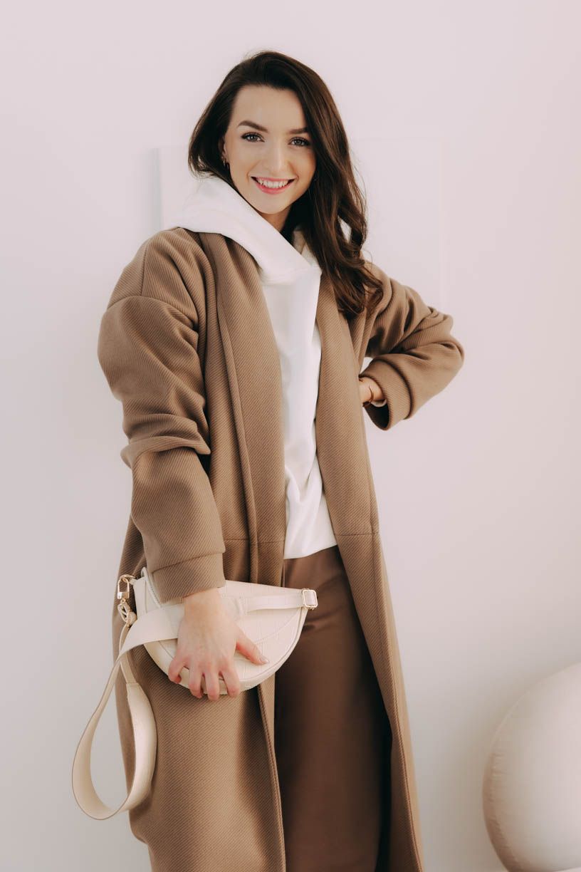 Oversized kabát Umaru je kombinací elegance a uvolněnosti – minimalistický kousek v oversized střihu a trendy mocha odstínu dokonale podtrhne každý outfit.