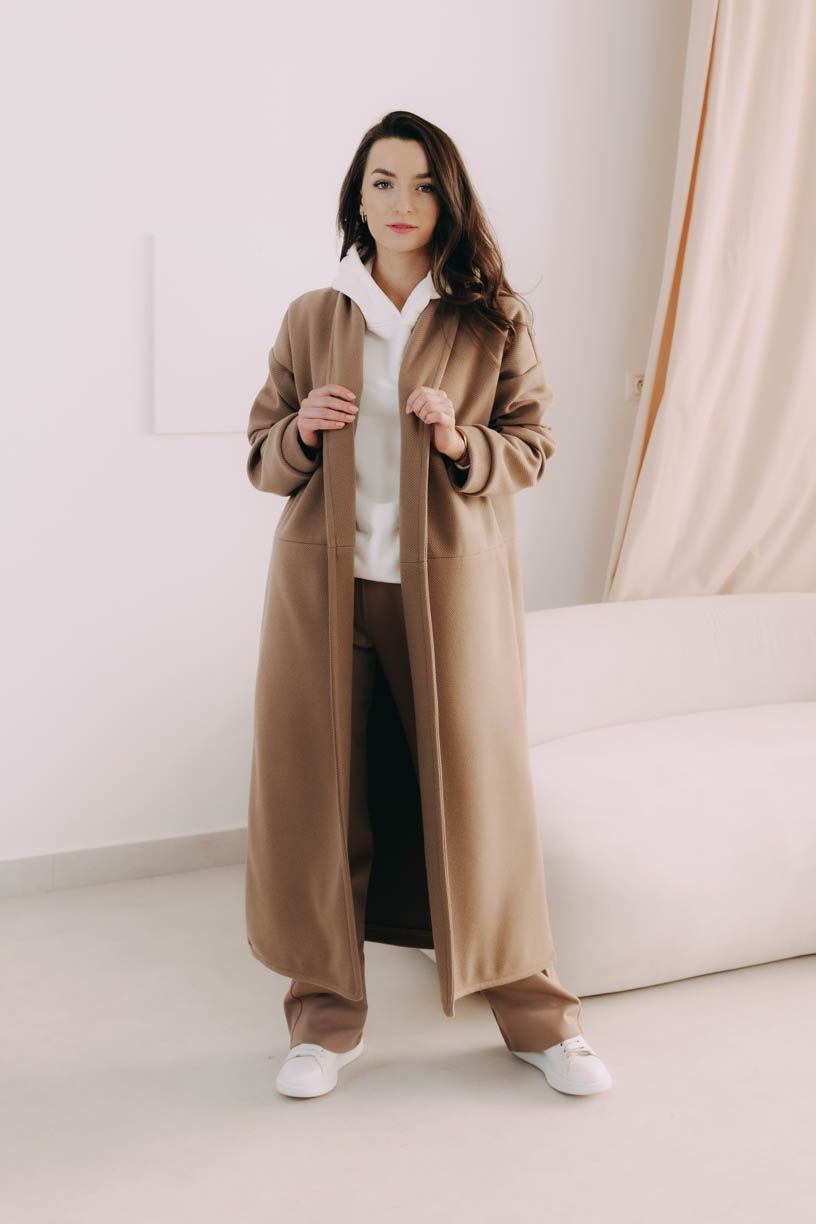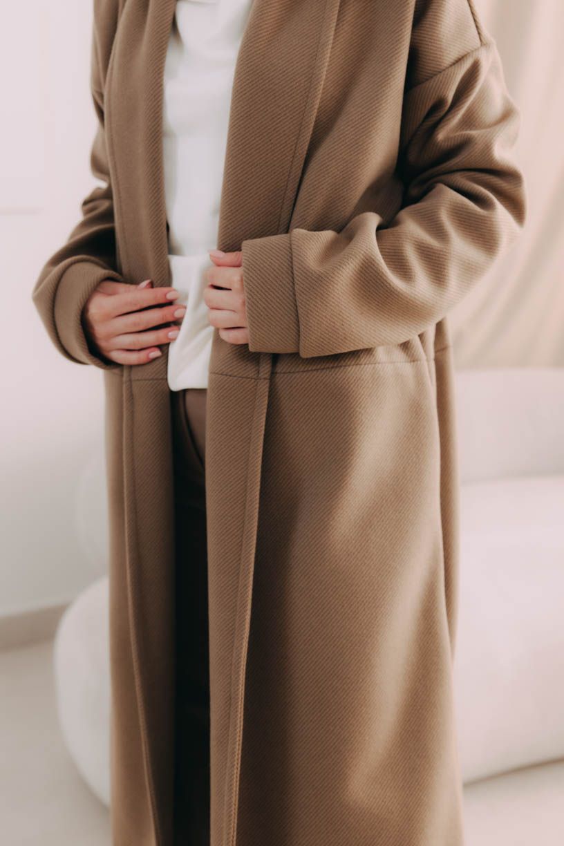 Ušili jsme ho bez podšívky, což mu dodává vzdušnost a přirozenou lehkost, a je tak ideální pro libovolné vrstvení v přechodných obdobích. Jeho dlouhá silueta ke kotníkům působí sofistikovaně, a přitom vám zajistí maximální pohodlí a volnost pohybu.