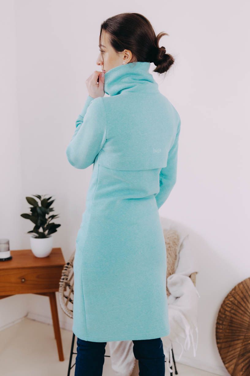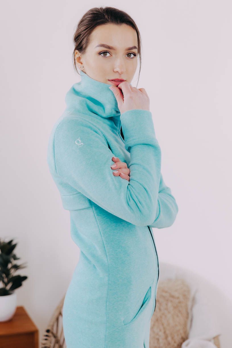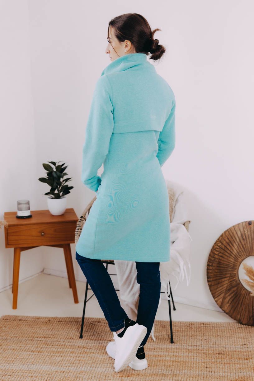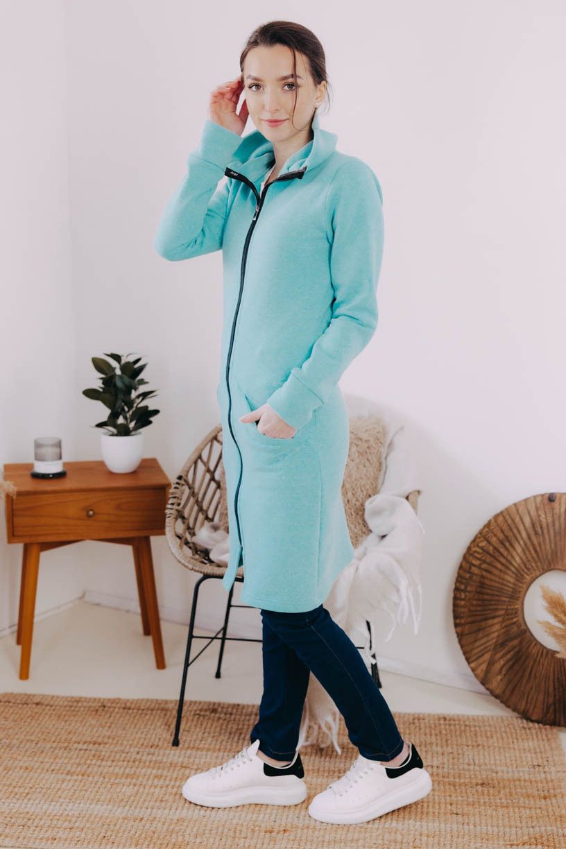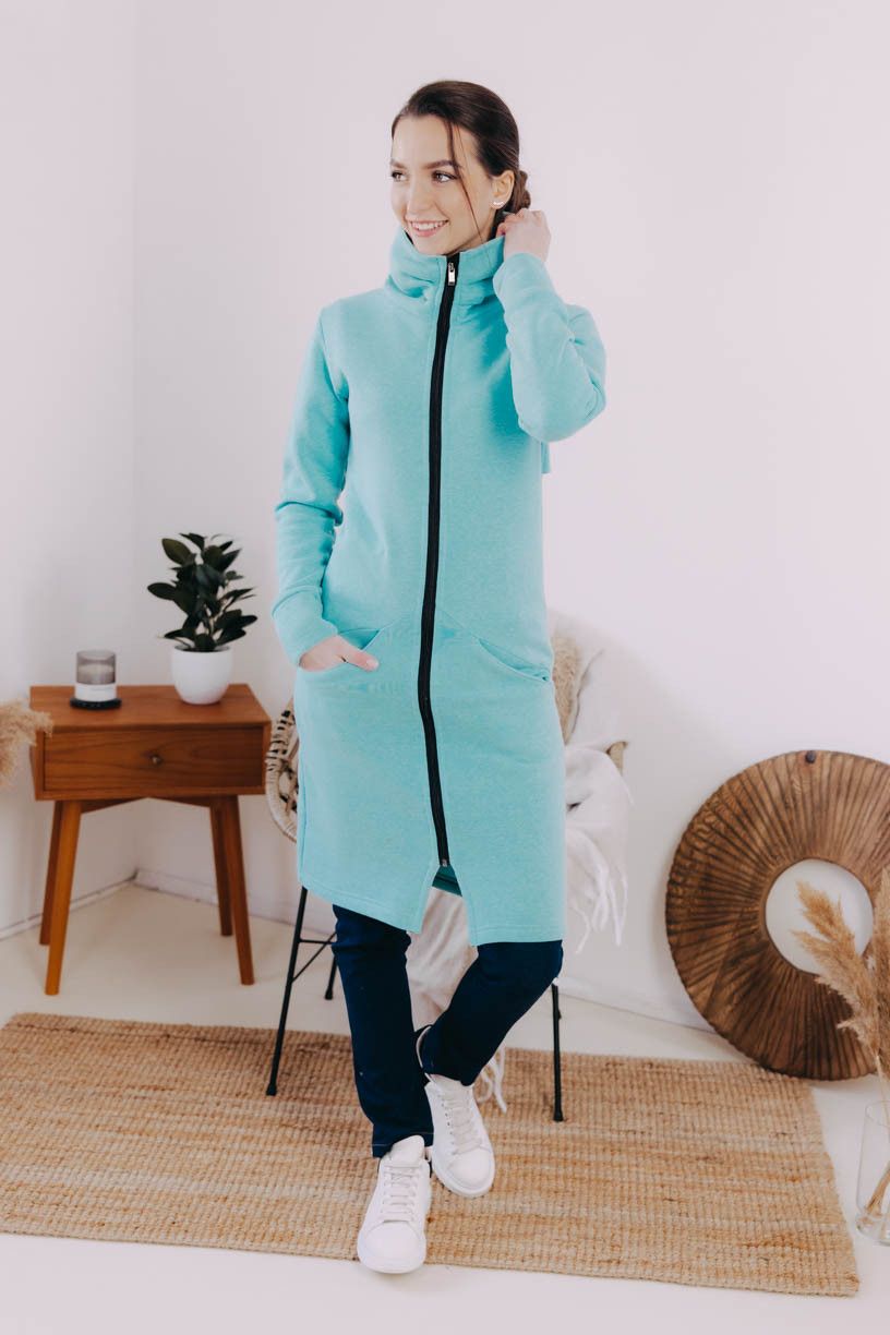 Tyrkysový mikinový kabátek na zip Dada je celoroční kousek, který využijete jako svrchní vrstvu, i jako hřejivý základ pod dlouhou bundu či vestu.