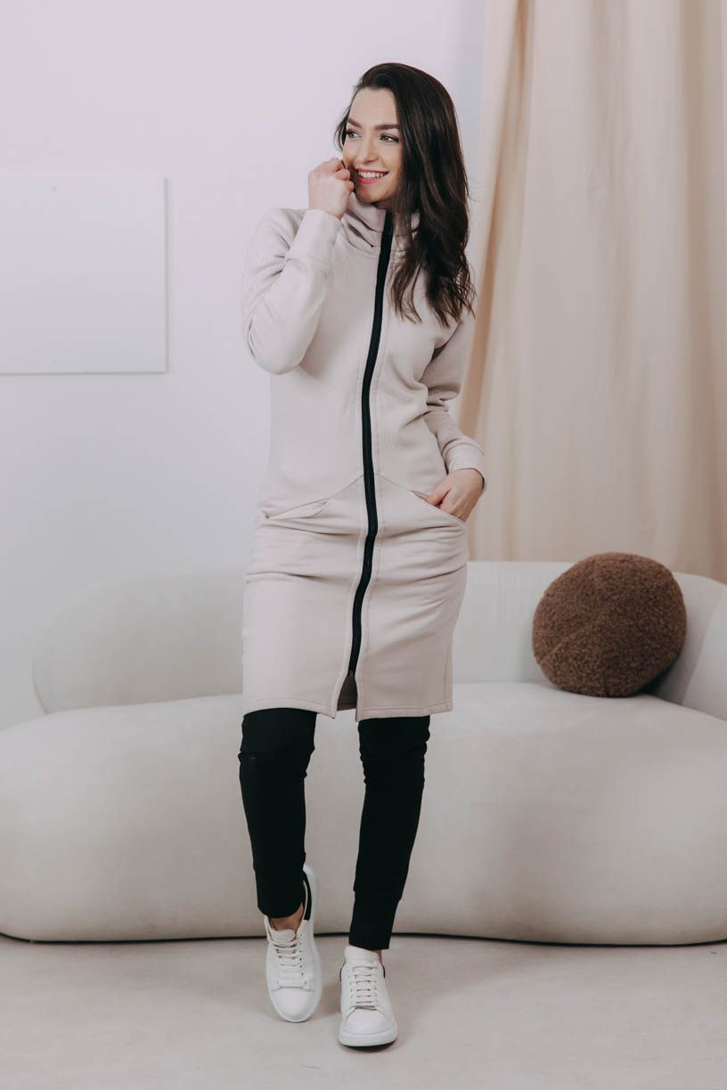Tento dámský mikinový kabátek s velkou kapucí spojuje funkčnost s udržitelnou módou a detaily, které si zamilujete: