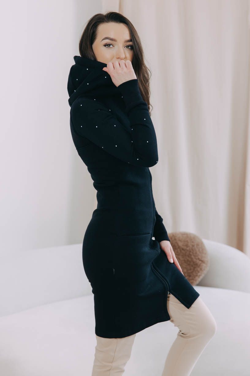 - Design a detaily:Lerato je dlouhý mikinový kabátek se zapínáním na zip po celé délce a velkou praktickou kapucí. Raglánové rukávy jsou zakončené dvojitým nápletem, který skvěle vypadá a navíc udrží vaše ruce v teple.