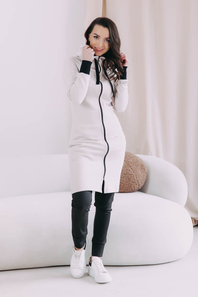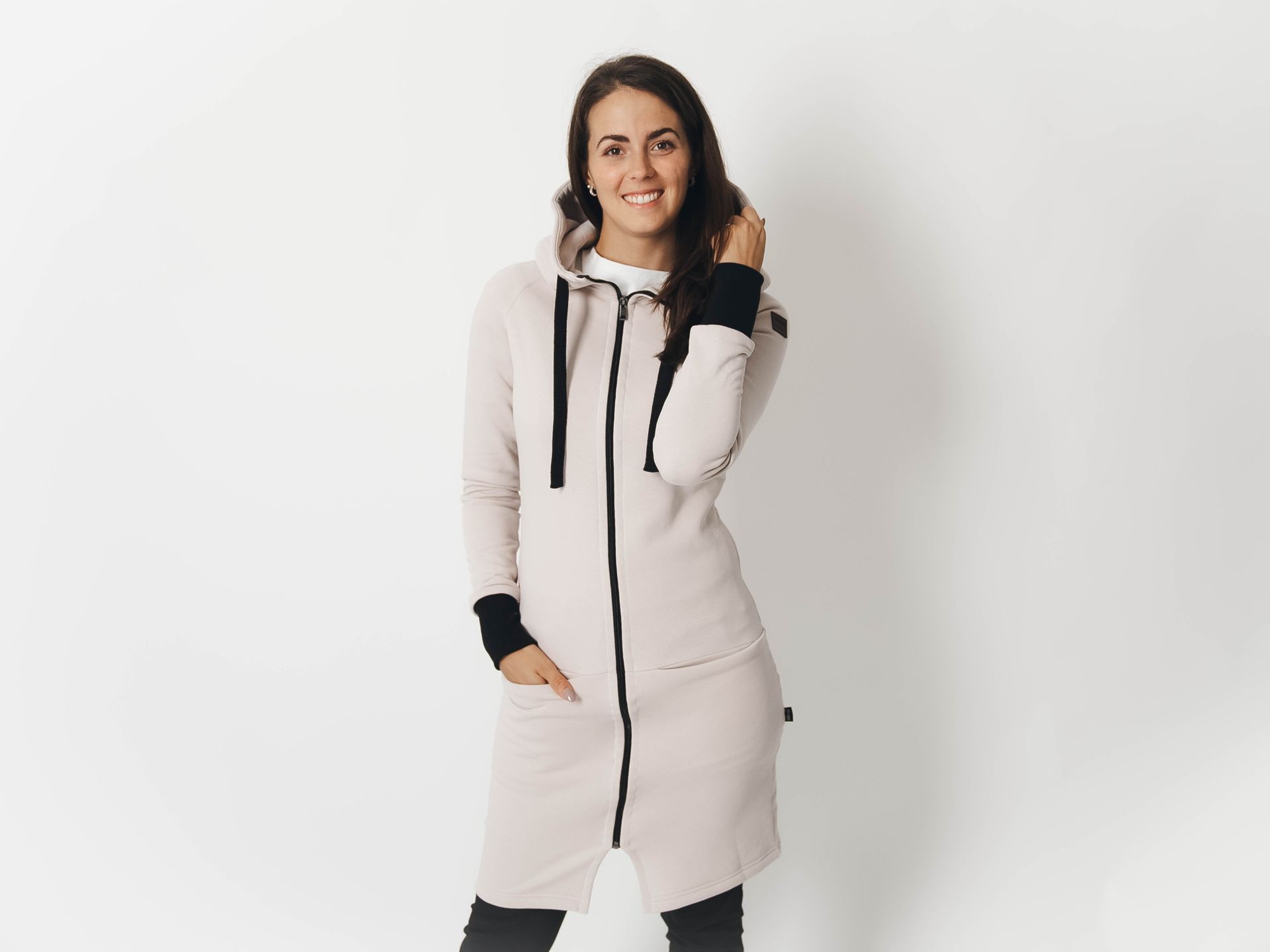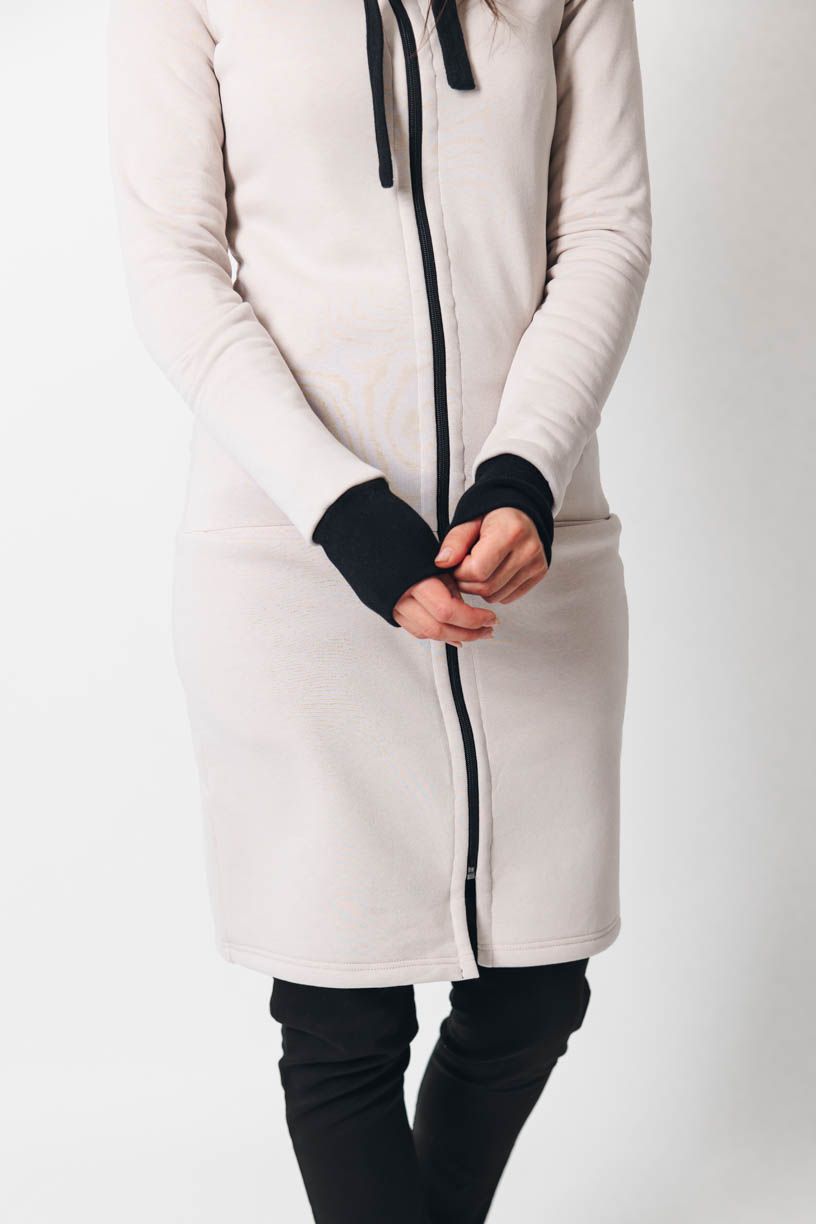 - Design a detaily:Lerato je dlouhý mikinový kabátek se zapínáním na zip po celé délce a velkou praktickou kapucí. Raglánové rukávy jsou zakončené dvojitým nápletem, který skvěle vypadá a navíc udrží vaše ruce v teple.