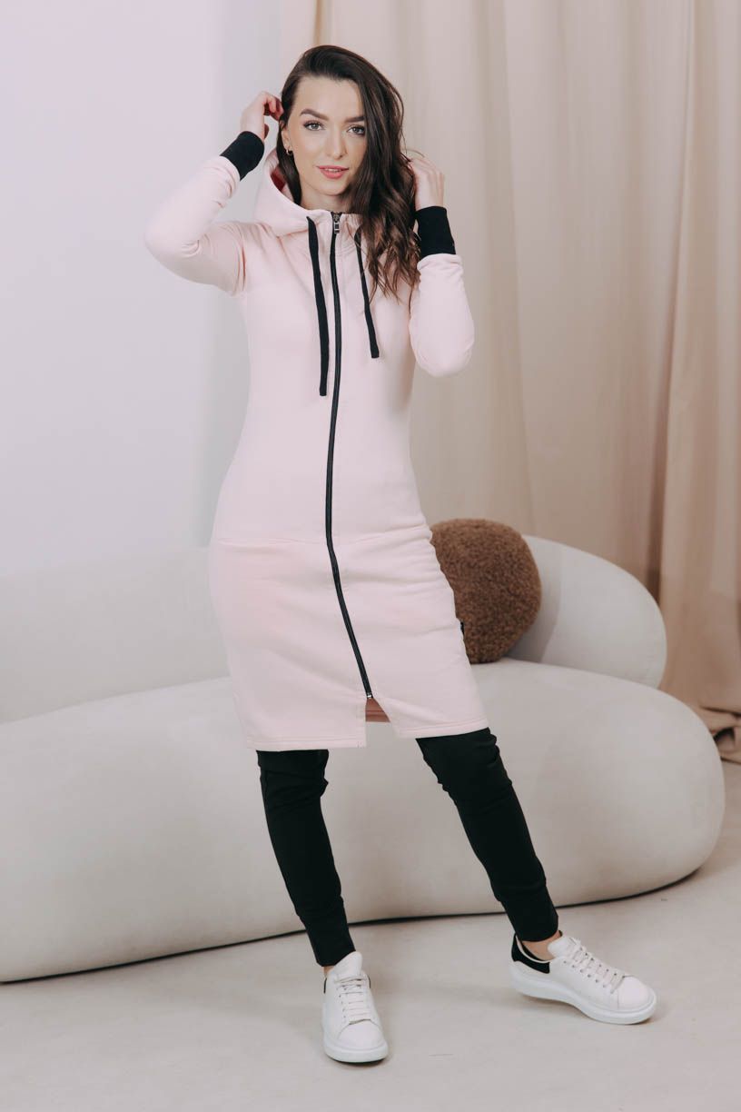- Design a detaily:Lerato je dlouhý mikinový kabátek se zapínáním na zip po celé délce a velkou praktickou kapucí. Raglánové rukávy jsou zakončené dvojitým nápletem, který skvěle vypadá a navíc udrží vaše ruce v teple.