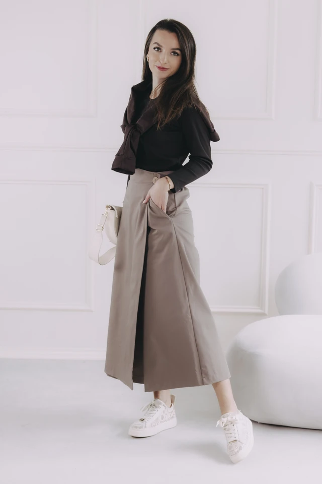 Nakisai je originální a designový kousek, který mistrně propojuje dva světy: pohodlí kalhot a ženskost sukně. Je důkazem, že minimalismus může být neuvěřitelně hravý. Není to jen oblečení, je to postoj. Díky svému jedinečnému střihu se hodí na každou postavu, jelikož chytře maskuje nedostatky a zvýrazňuje přednosti. Jednoduše elegantní a dokonale pohodlná.