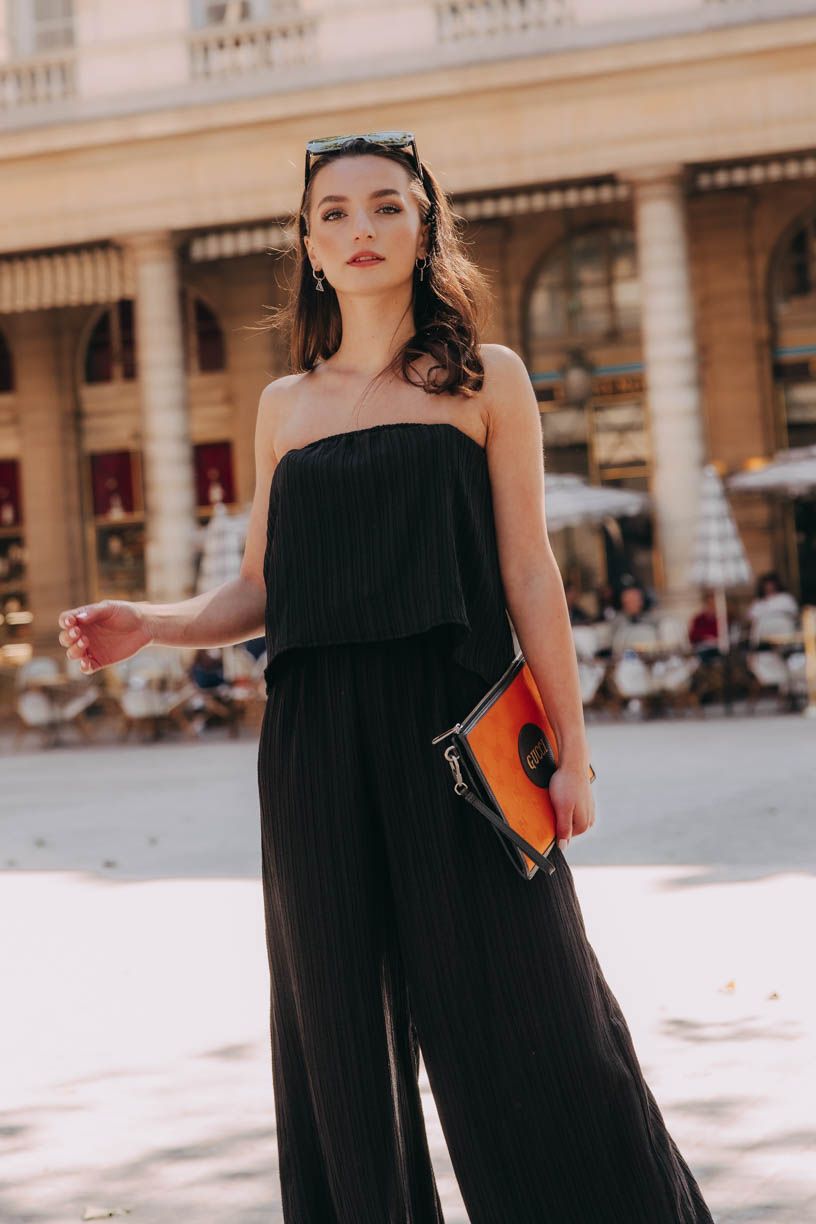 Kalhotový overal bez ramínek Jalia je snoubením pohodlí a elegance. Blýsknete se v něm v tropických vedrech, ale i na plese.