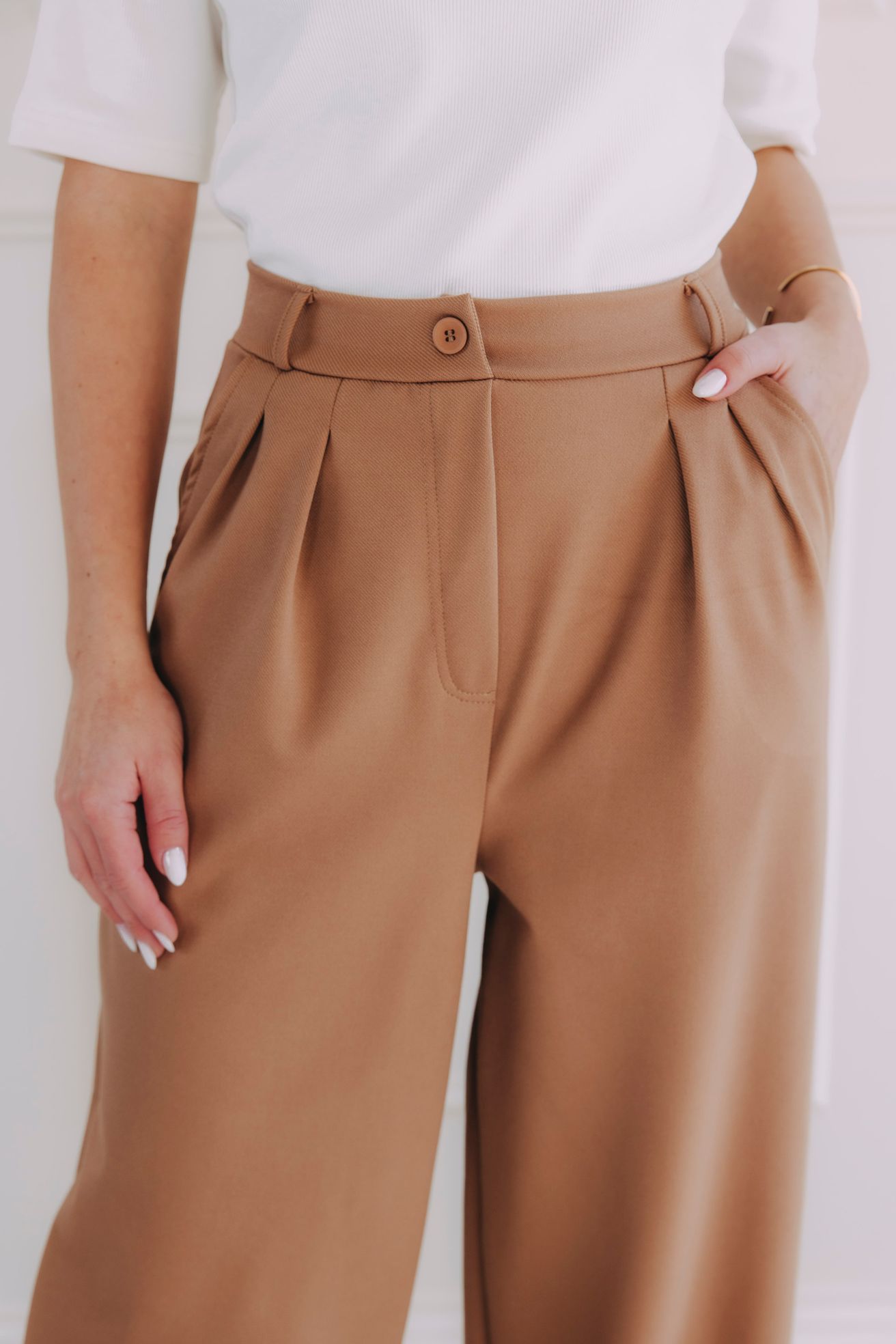 Dejte stopku nudným a jednostranným outfitům! Kalhoty Amadu v elegantní karamelové barvě jsou tajnou zbraní pro ženy, které milují pánský styl v nekompromisně elegantním provedení. Z meetingu s nimi rovnou vyrazíte na večeři nebo večírek. Vypadají jako precizně střižený kostýmek, ale díky skrytým detailům vám dopřejí volnost pohybu, kterou nečekáte. Perfektně zapadají do konceptu udržitelné módy, protože s nimi vytvoříte nekonečné množství nadčasových outfitů.