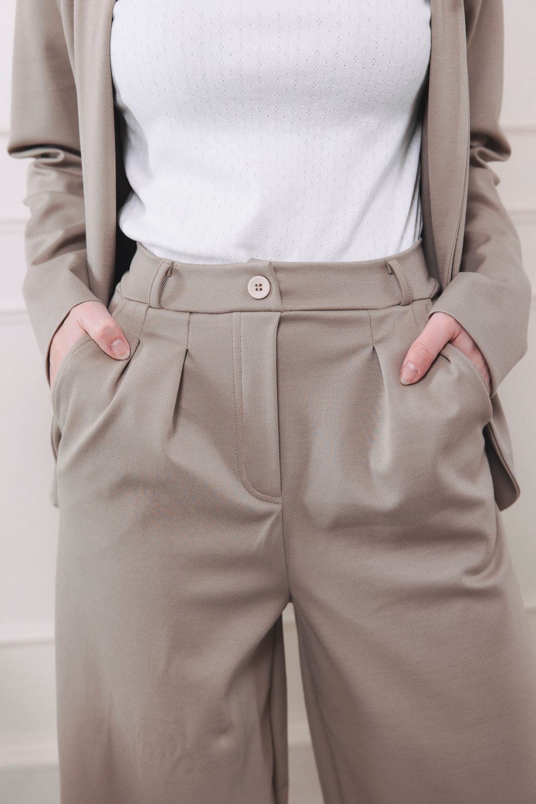 Dejte stopku nudným a jednostranným outfitům! Kalhoty Amadu v elegantní béžovo-šedé jsou tajnou zbraní pro ženy, které milují pánský styl v nekompromisně elegantním provedení. Z meetingu s nimi rovnou vyrazíte na večeři nebo večírek. Vypadají jako precizně střižený kostýmek, ale díky skrytým detailům vám dopřejí volnost pohybu, kterou nečekáte. Perfektně zapadají do konceptu udržitelné módy, protože s nimi vytvoříte nekonečné množství nadčasových outfitů.