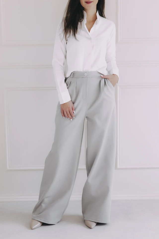 Kalhoty Amadu jsou univerzálně lichotivé. Vysoký pas opticky prodlužuje nohy, zatímco široké nohavice a sklady vyrovnávají siluetu, což je skvělé zejména pro postavy typu hruška a přesýpací hodiny.