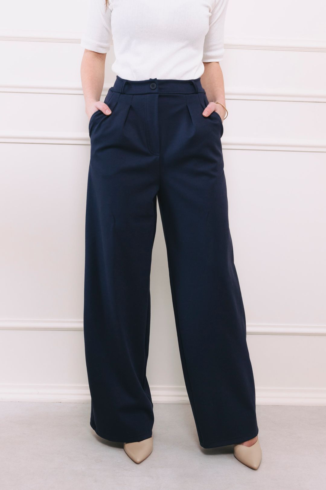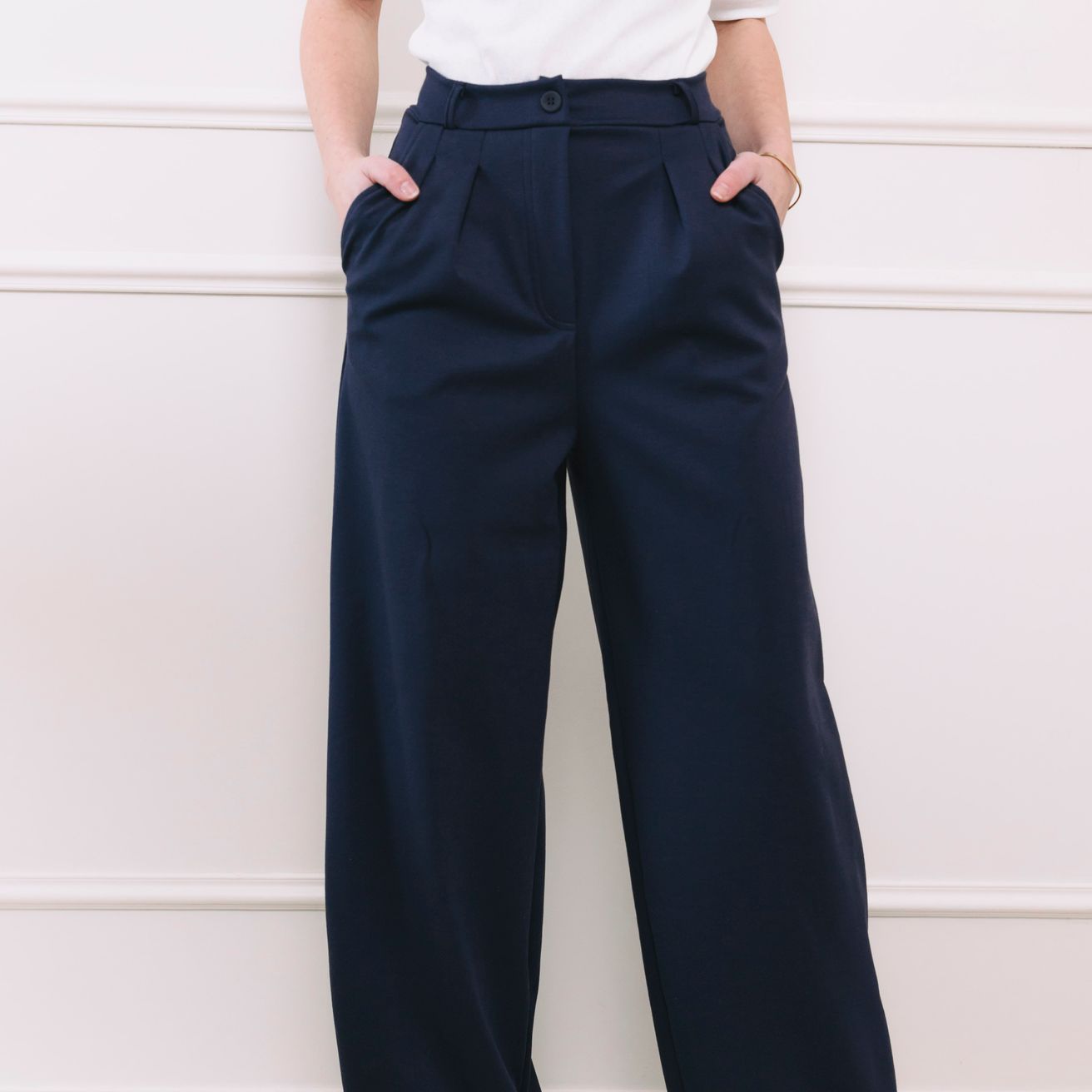 Kalhoty Amadu jsou univerzálně lichotivé. Vysoký pas opticky prodlužuje nohy, zatímco široké nohavice a sklady vyrovnávají siluetu, což je skvělé zejména pro postavy typu hruška a přesýpací hodiny.