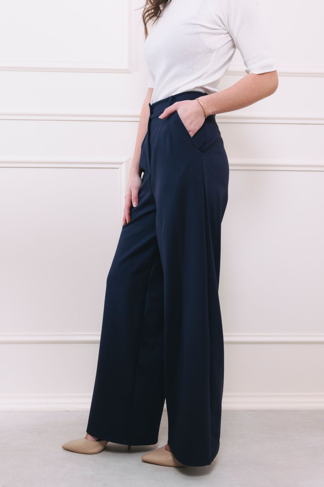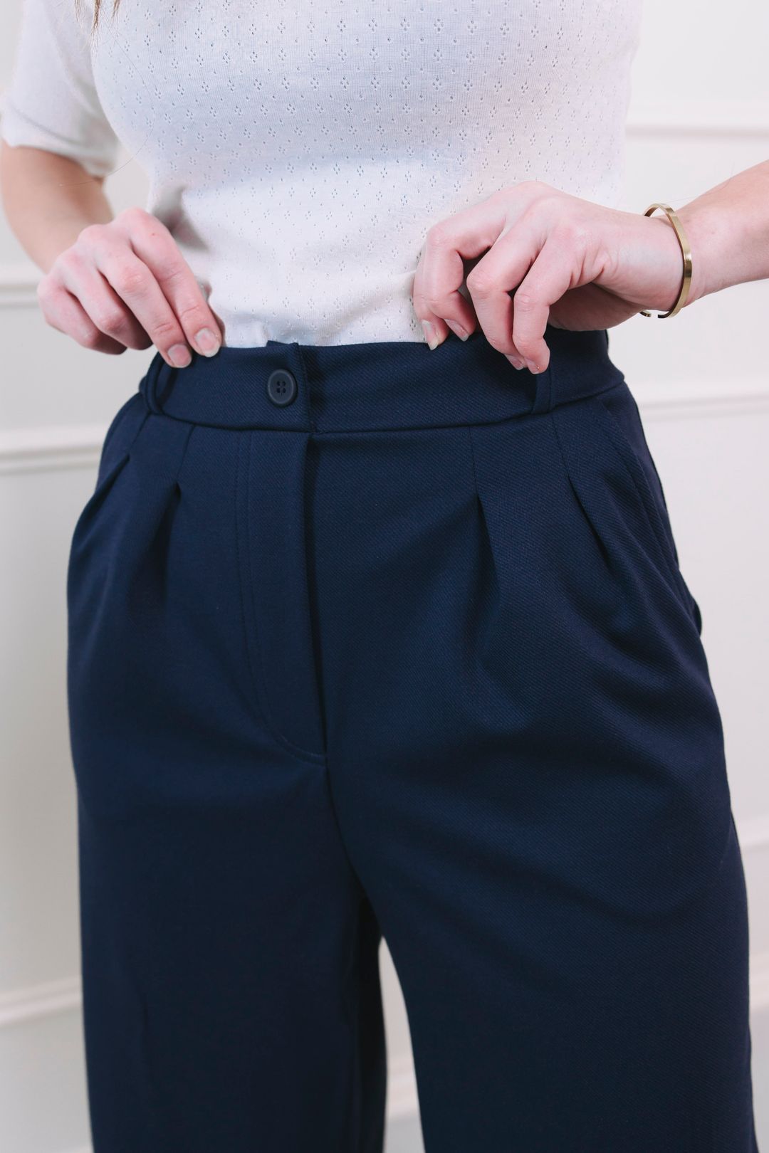 Dejte stopku nudným a jednostranným outfitům! Kalhoty Amadu v elegantní navy barvě jsou tajnou zbraní pro ženy, které milují pánský styl v nekompromisně elegantním provedení. Z meetingu s nimi rovnou vyrazíte na večeři nebo večírek. Vypadají jako precizně střižený kostýmek, ale díky skrytým detailům vám dopřejí volnost pohybu, kterou nečekáte. Perfektně zapadají do konceptu udržitelné módy, protože s nimi vytvoříte nekonečné množství nadčasových outfitů.