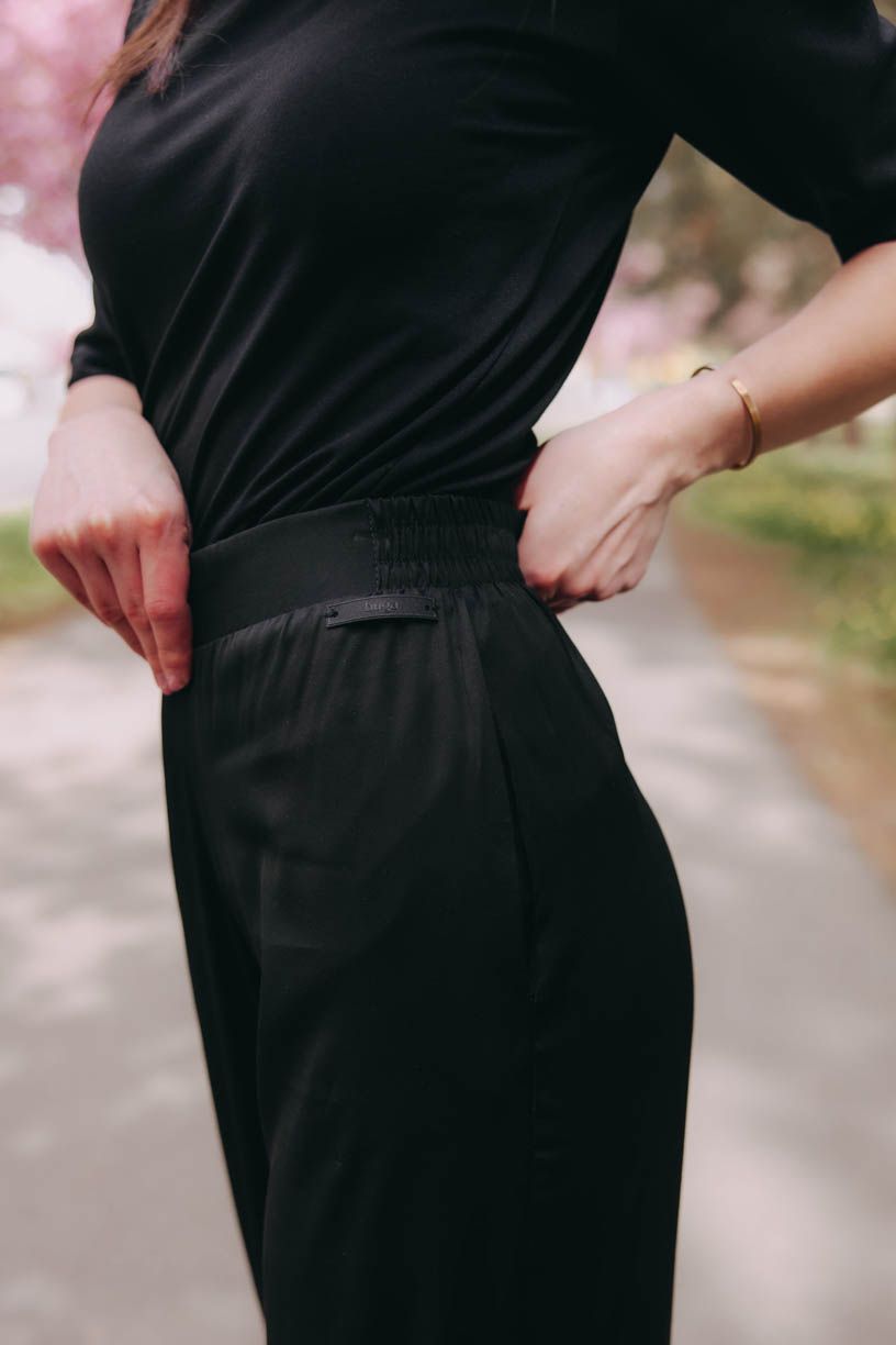 Jemné jako satén. V kalhotách Bijali Black si užijete horké dny s nevídanou lehkostí. Chladivé, splývavé, pohodlné – pro letní outfity jako stvořené.
