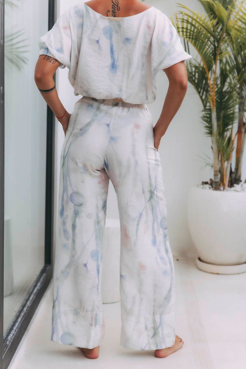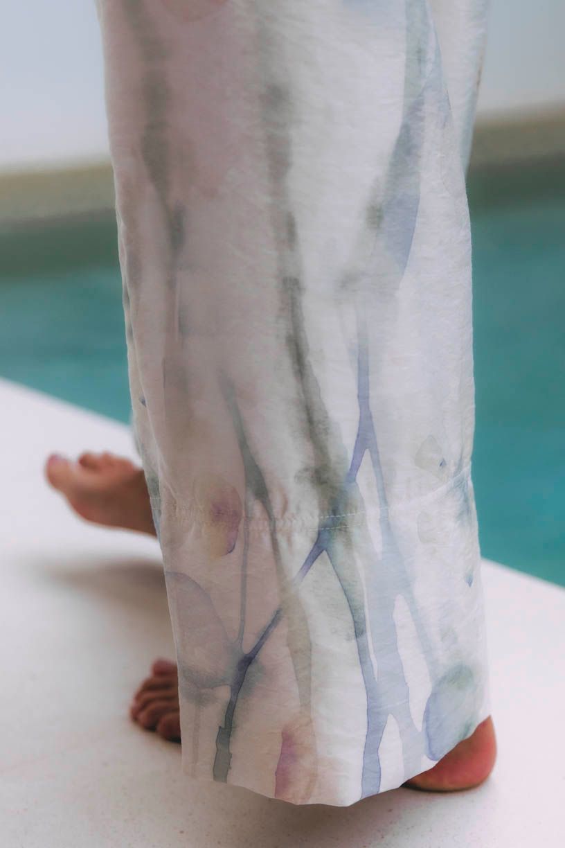 Nosíte umění. Kalhoty Gede Aquarelle vypadají jako malované. Jsou vzdušné, s vysokým pasem a širokou gumou pro dokonalé pohodlí.