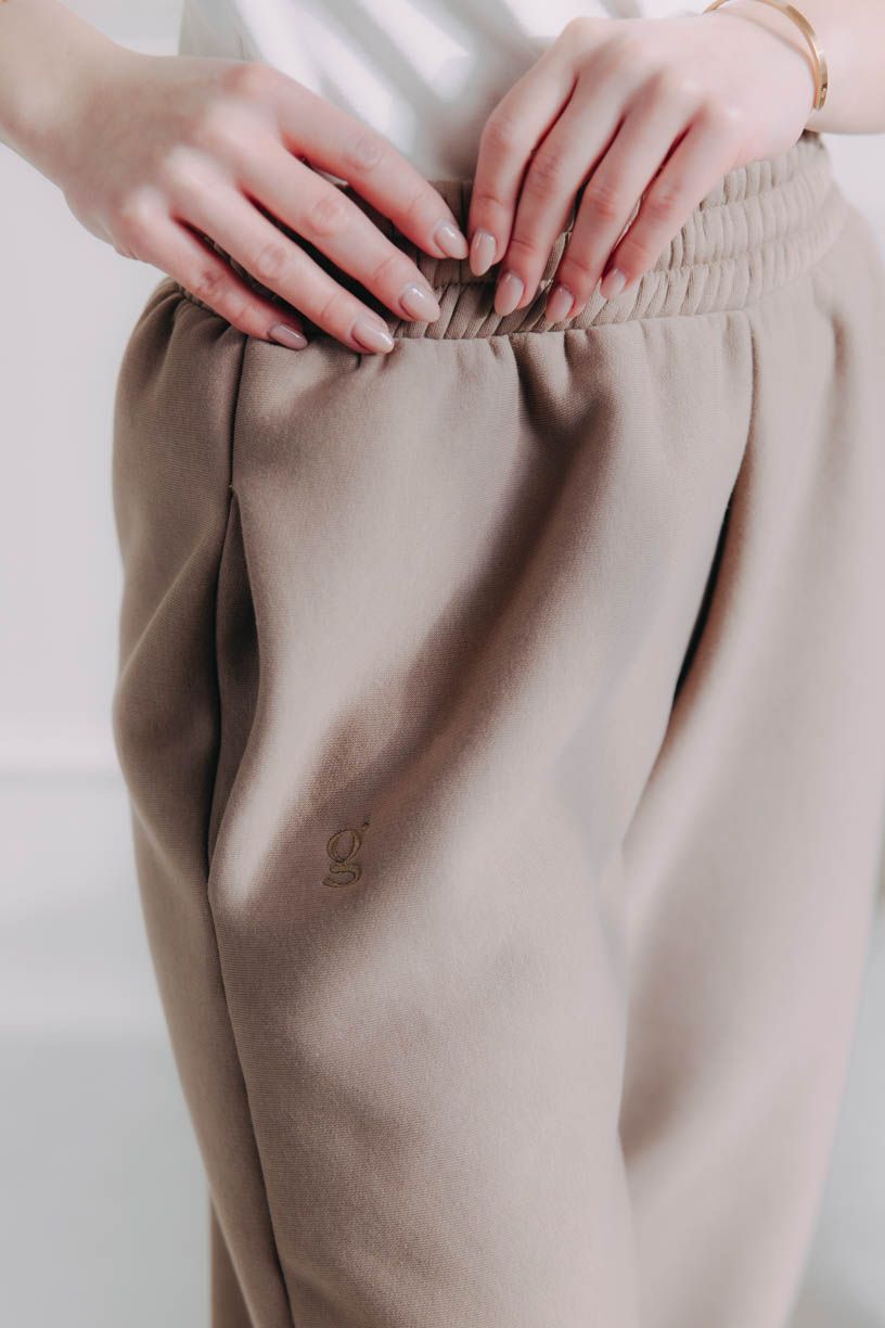 • Střih: Volnější, lichotivý střih s pružným pasem, který drží, ale netlačí. Zakončení nohavic do gumy dodává sportovní vibe.