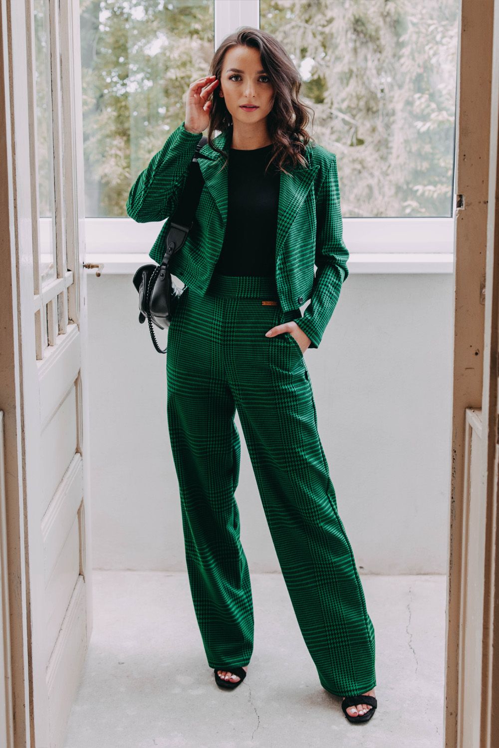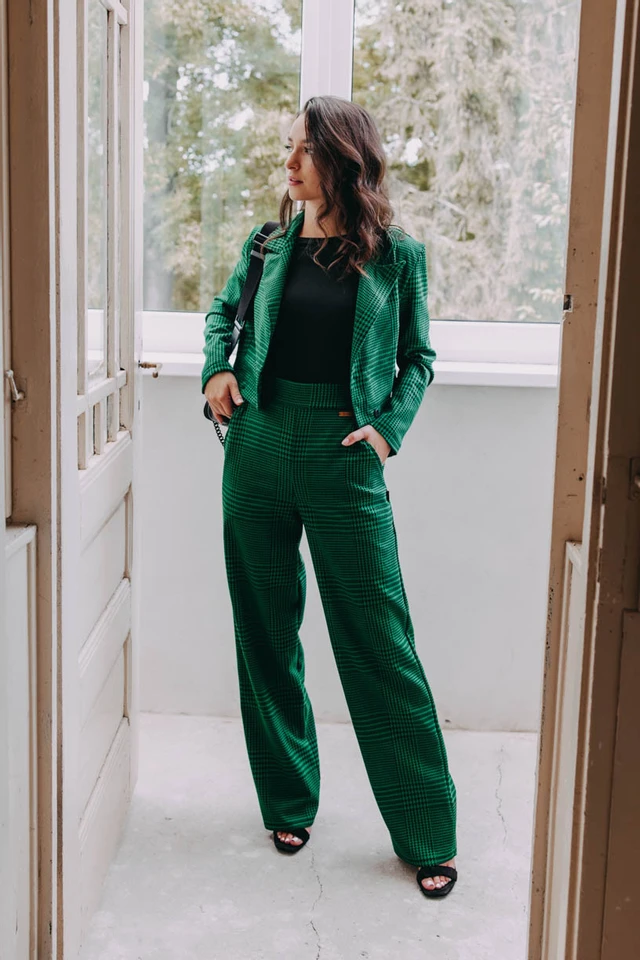 Ze stejné látky ušila i cropnuté sako Aris, které můžete kombinovat samostatně, nebo nosit s kalhotami jako šik kostým.