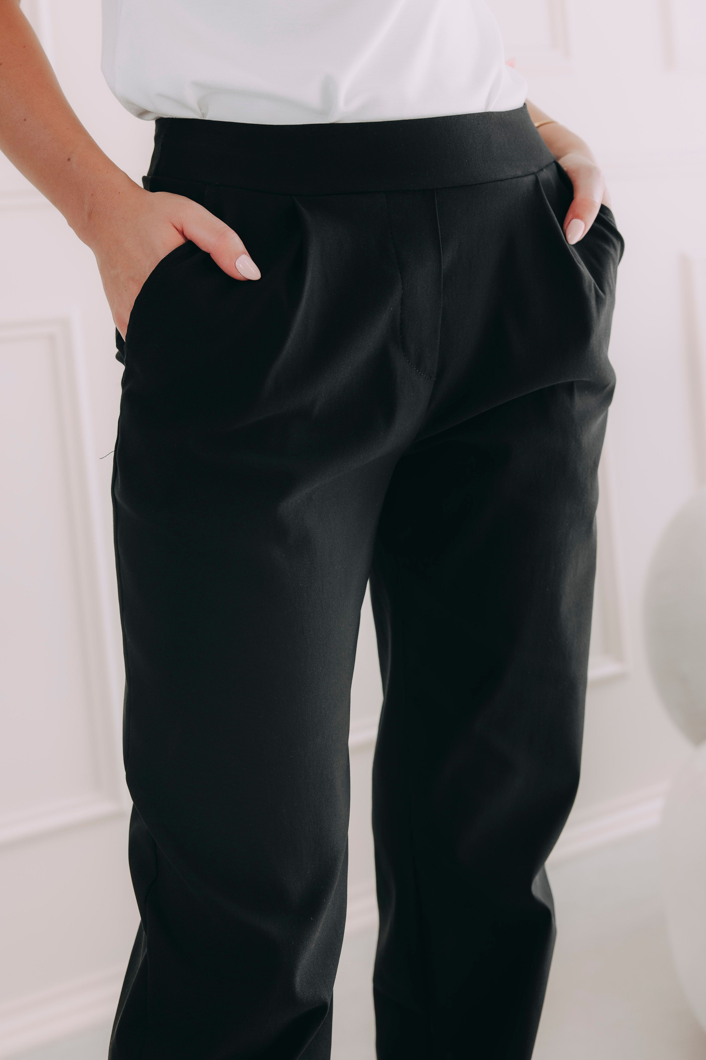 - Pohodlí na prvním místě: Strečový materiál z viskózy, polyamidu a elastanu zajistí, že kalhoty perfektně padnou a neomezí vás v žádném pohybu. Jsou to pohodlné černé kalhoty, ve kterých se budete cítit skvěle po celý den.