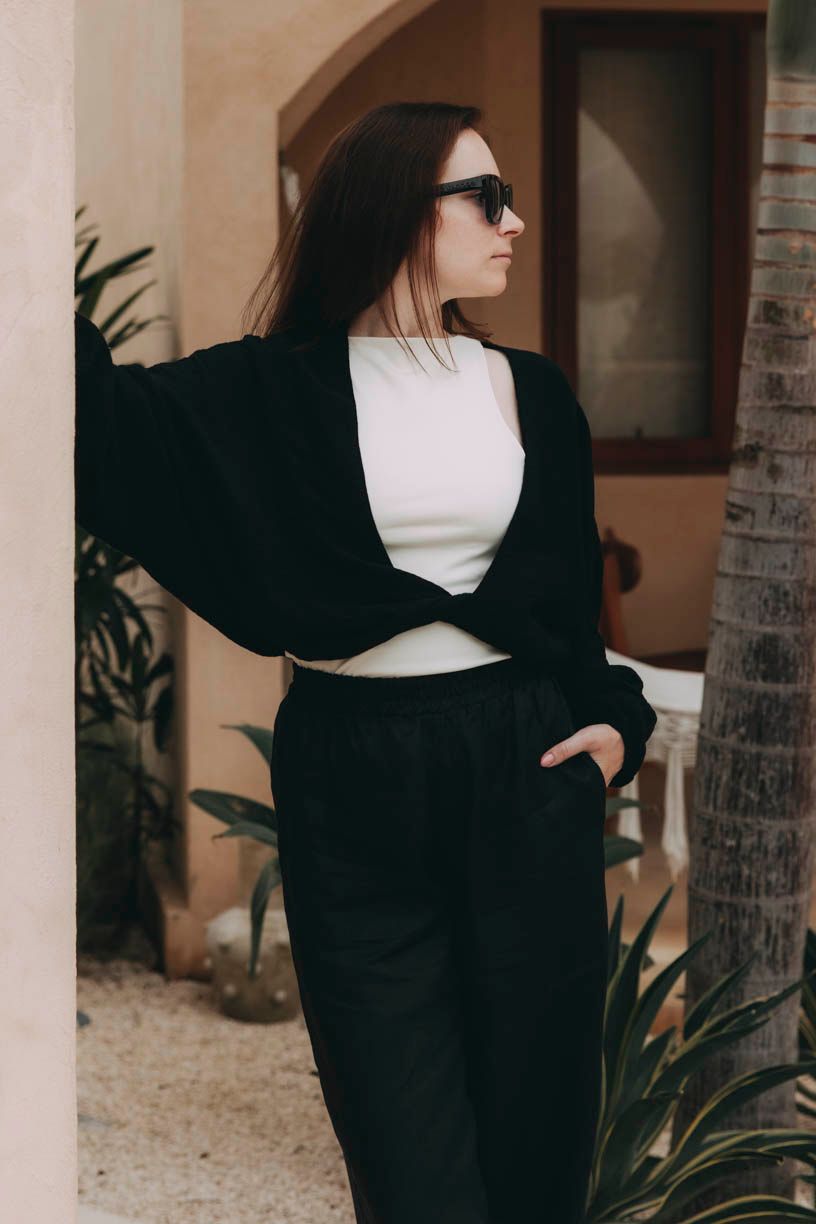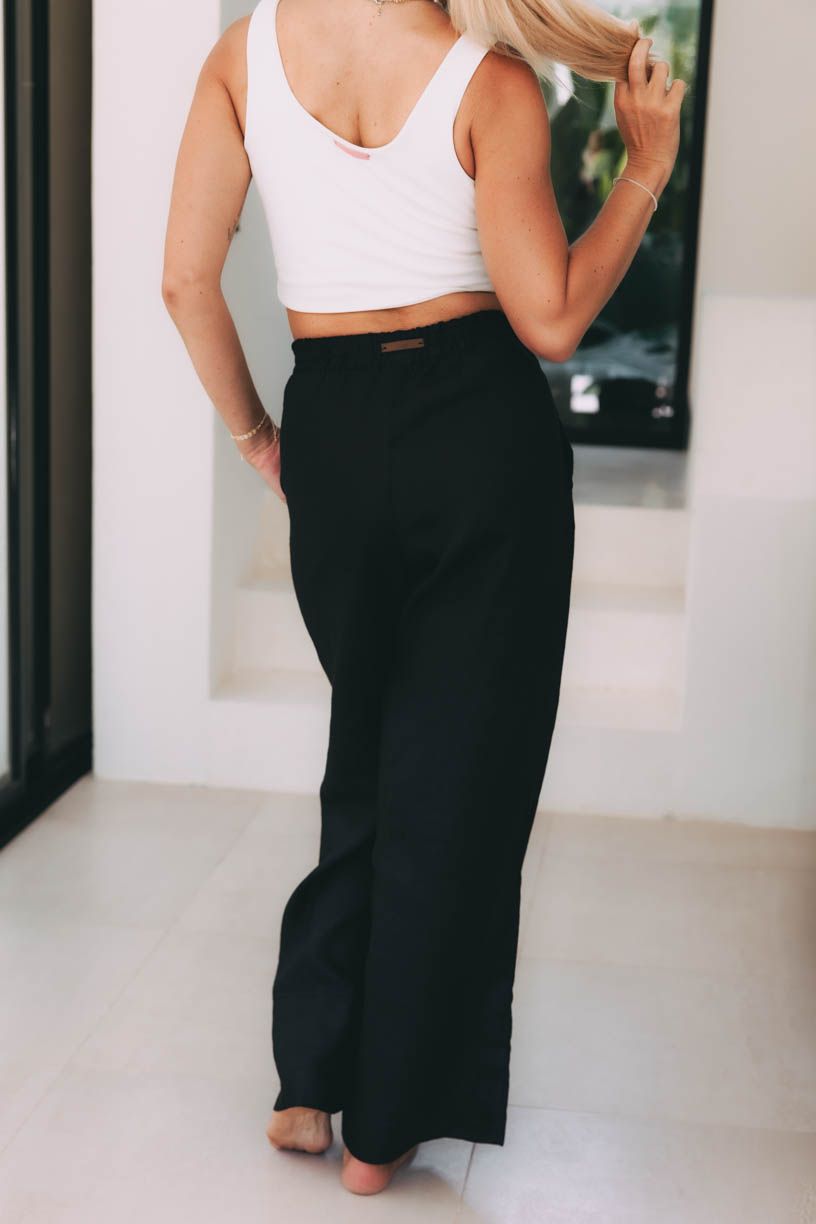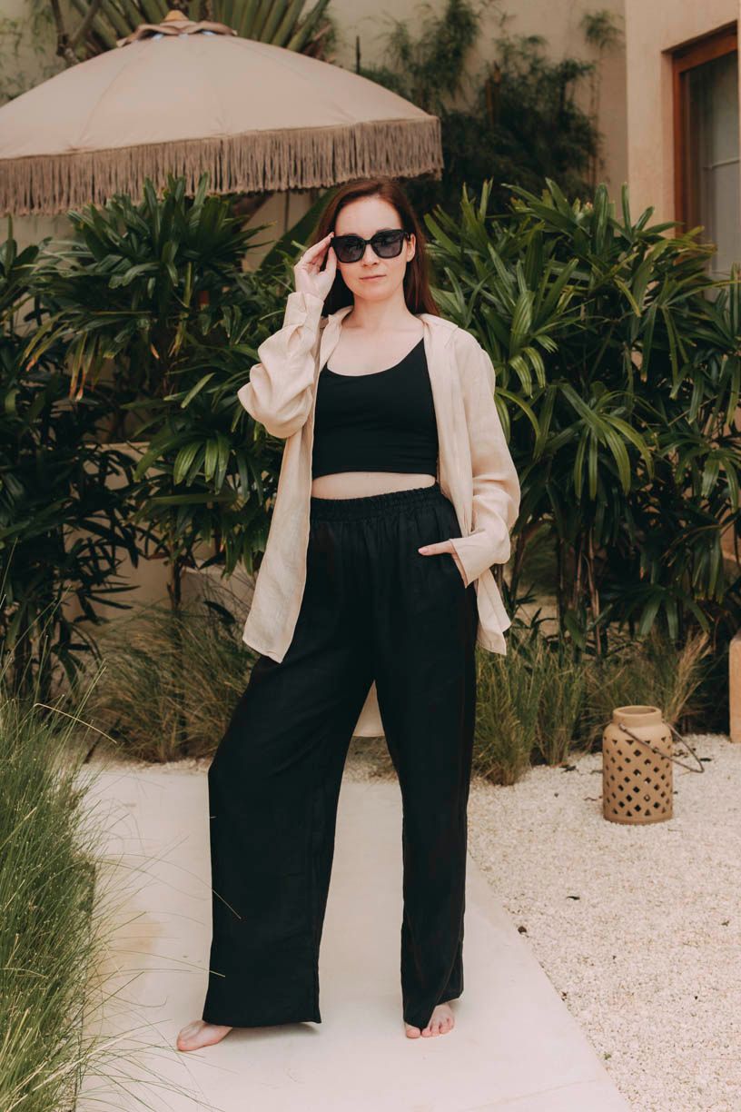 Made Gabija pro monochromatický černý outfit nebo je noste samostatně s oblíbeným topem. Snadno je sladíte s basic tričkem i elegantnější halenkou, což z nich dělá univerzální kousek pro každý den. Nejen ten dovolenkový.