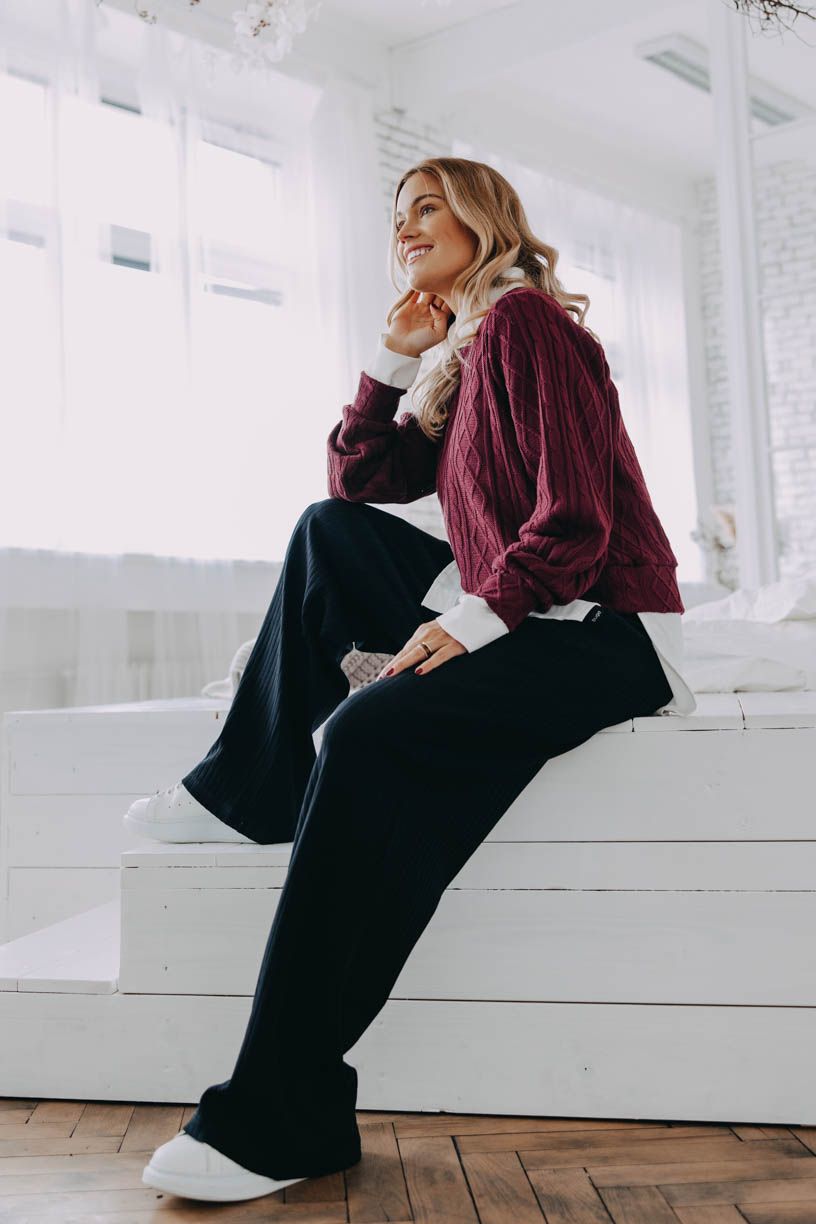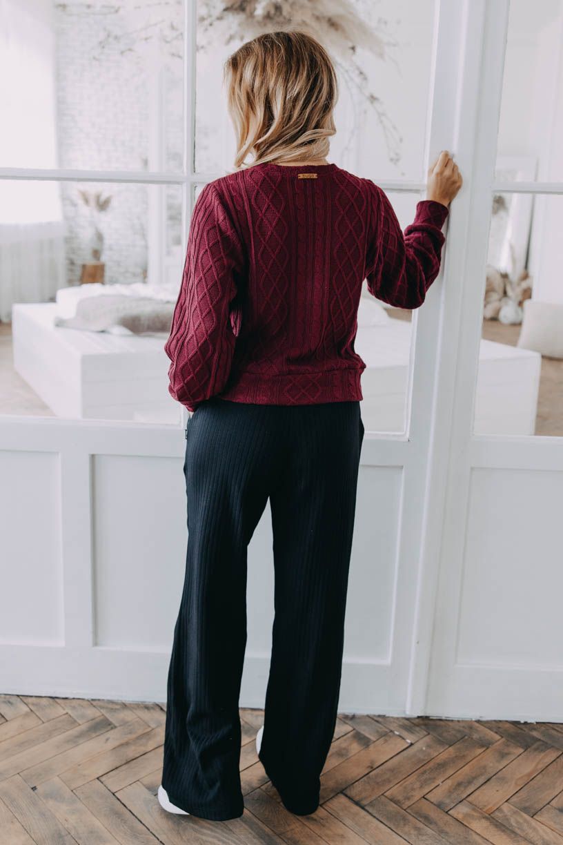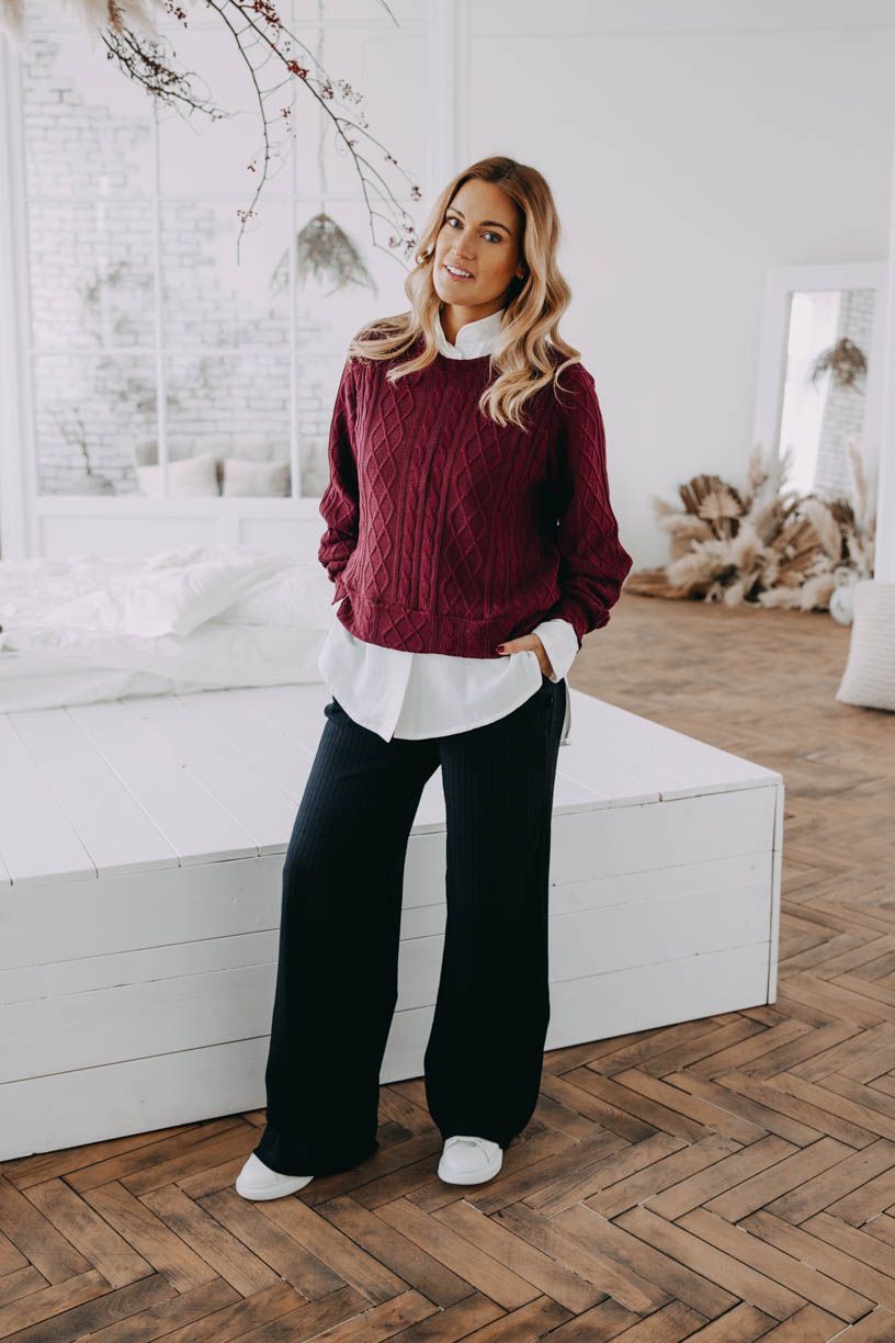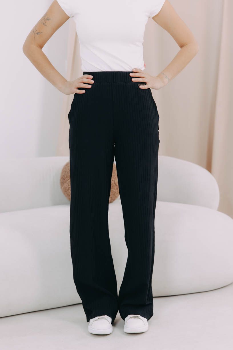 Oblíbené široké kalhoty okořeněné vroubkovanou texturou posouvají nošení kalhot o další level.