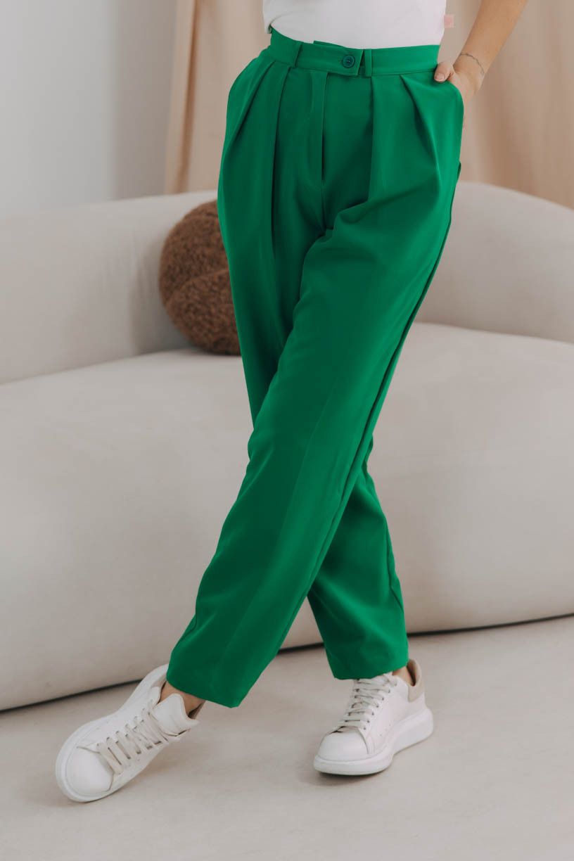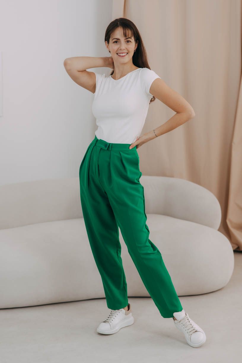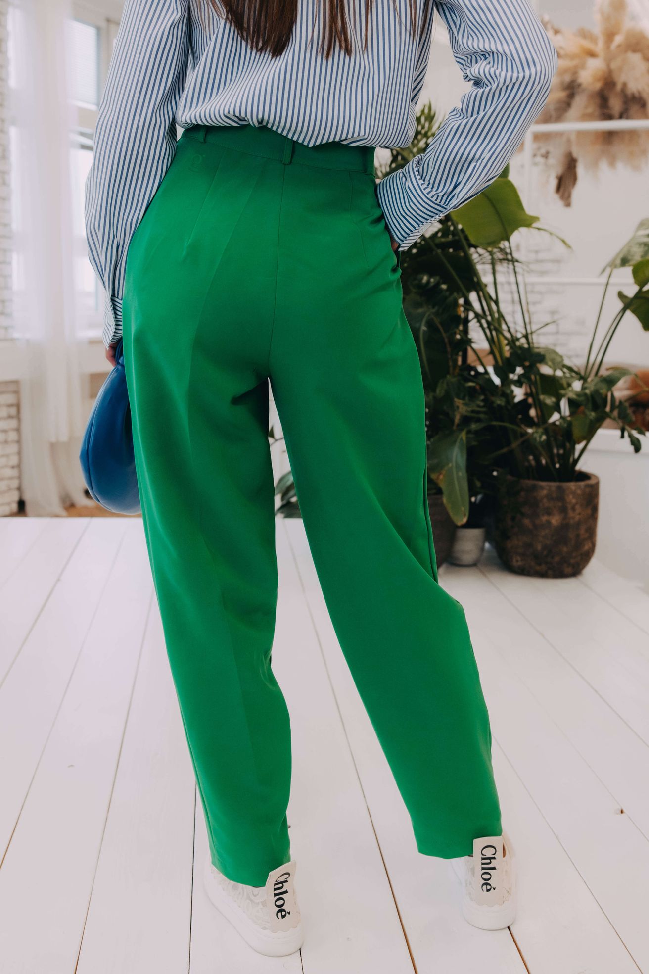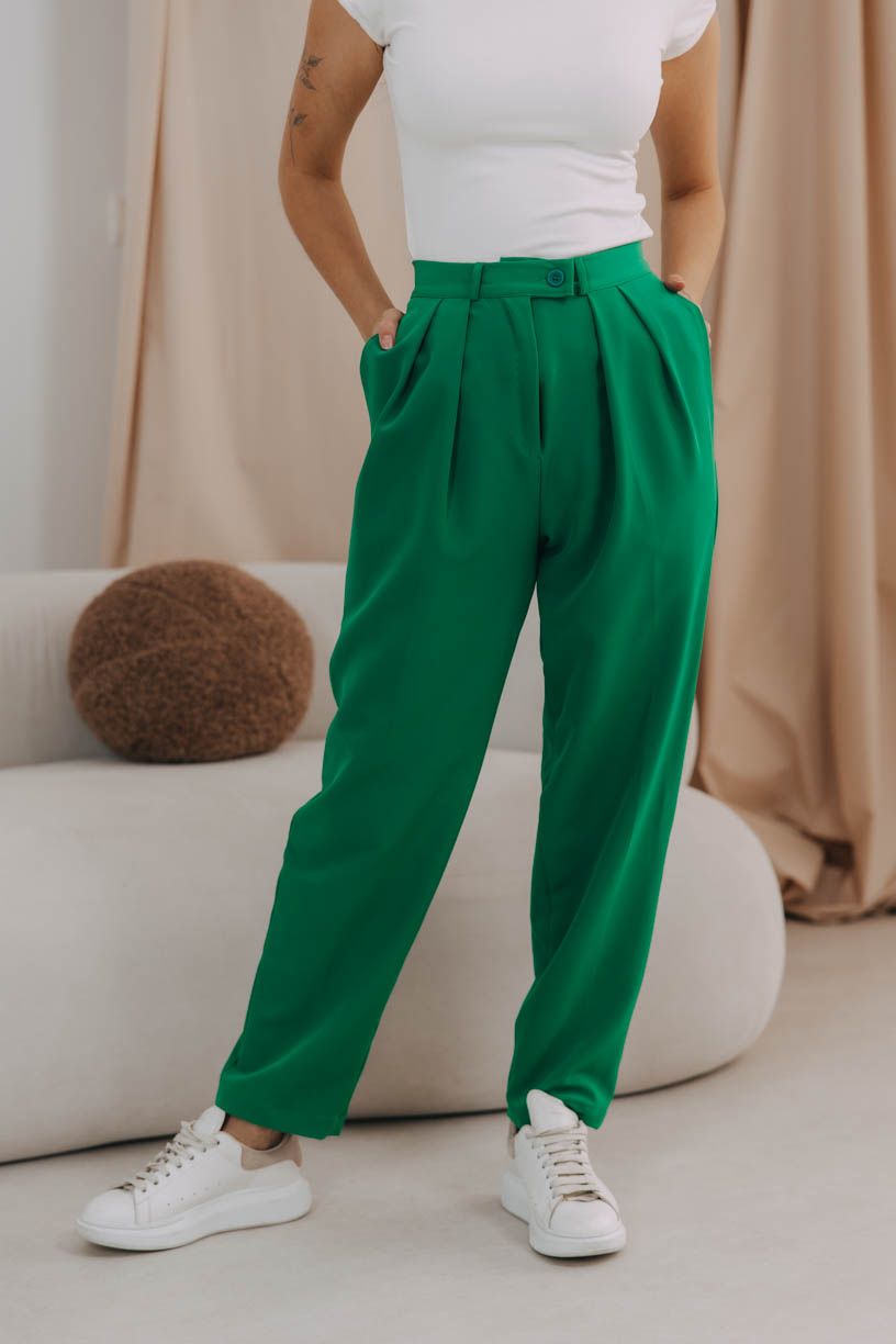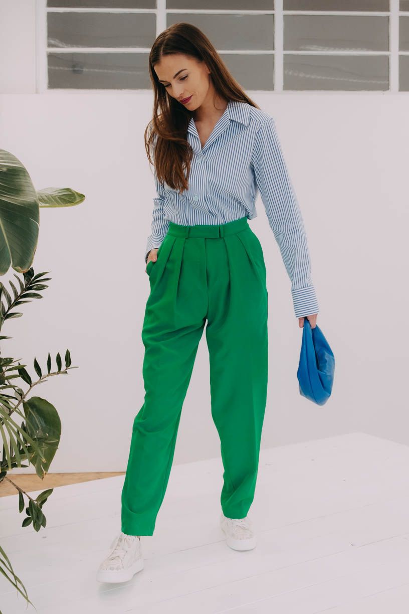 Buga a zip u kalhot? Už je to tak. Zvlášť u outfitů s mužským nádechem je zip zkrátka takovou nezbytností. Nebojte se ale nic, je perfektně ukryt a posichrován nenápadnou patentkou.