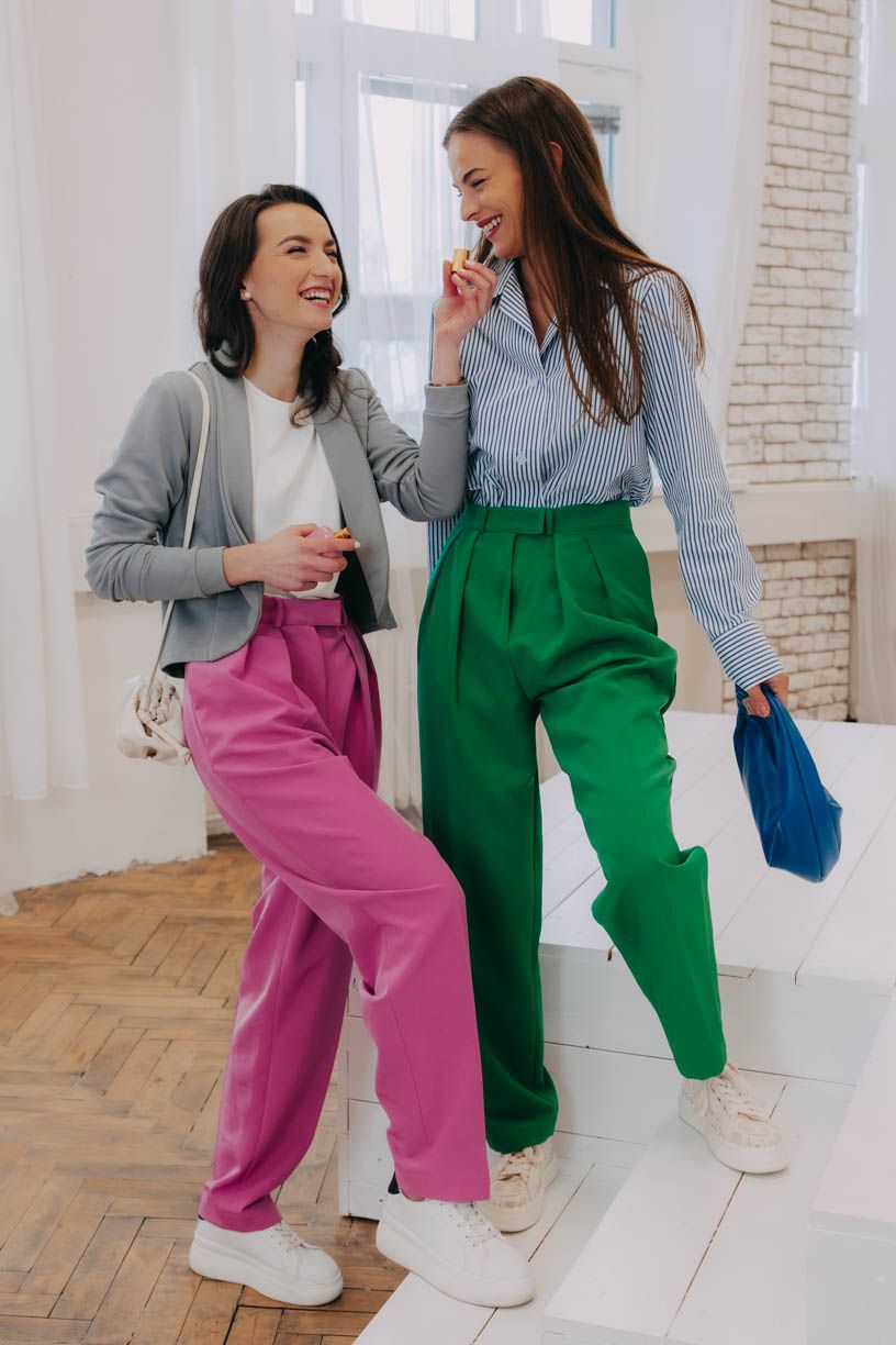 Poznávacími znameními těchto neotřelých kalhot jsou pevný materiál, volnější „mrkvový“ střih, decentní sklady na přední části, poutka na pásek a samozřejmě praktické kapsy. Pokud si potrpíte na pánský styl oblékání, pak jsou Sanyu skvělou volbou. Pro rebelky, které rády boří konvence pak máme tip na ohrnutí nohavic – tenhle prvek působí ležérně, suverénně a nápaditě.
