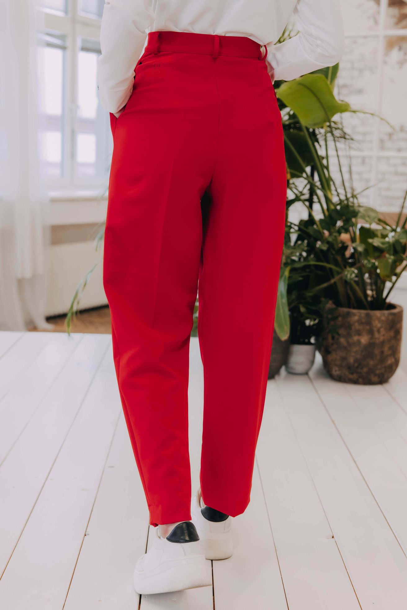 Buga a zip u kalhot? Už je to tak. Zvlášť u outfitů s mužským nádechem je zip zkrátka takovou nezbytností. Nebojte se ale nic, je perfektně ukryt a posichrován nenápadnou patentkou.