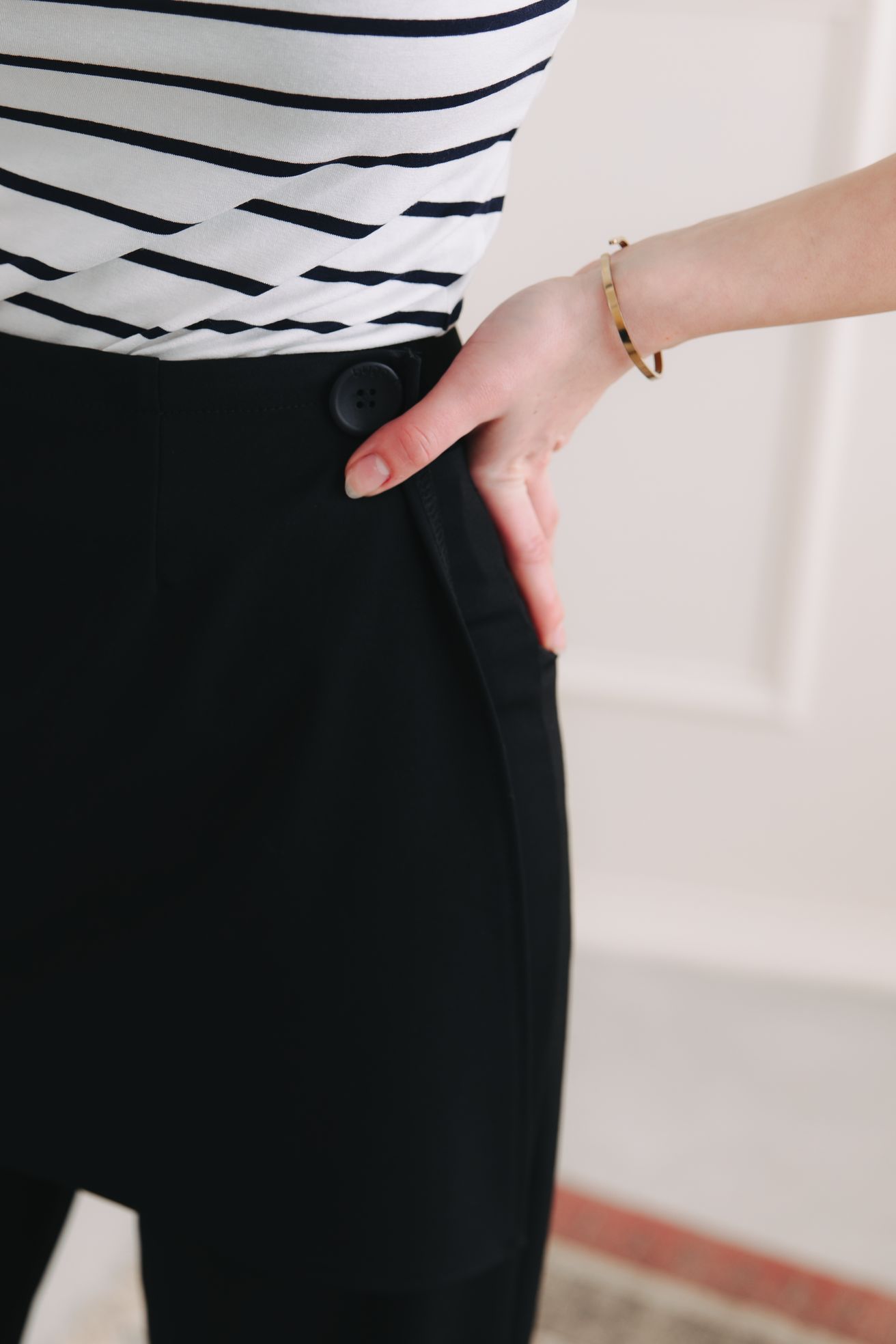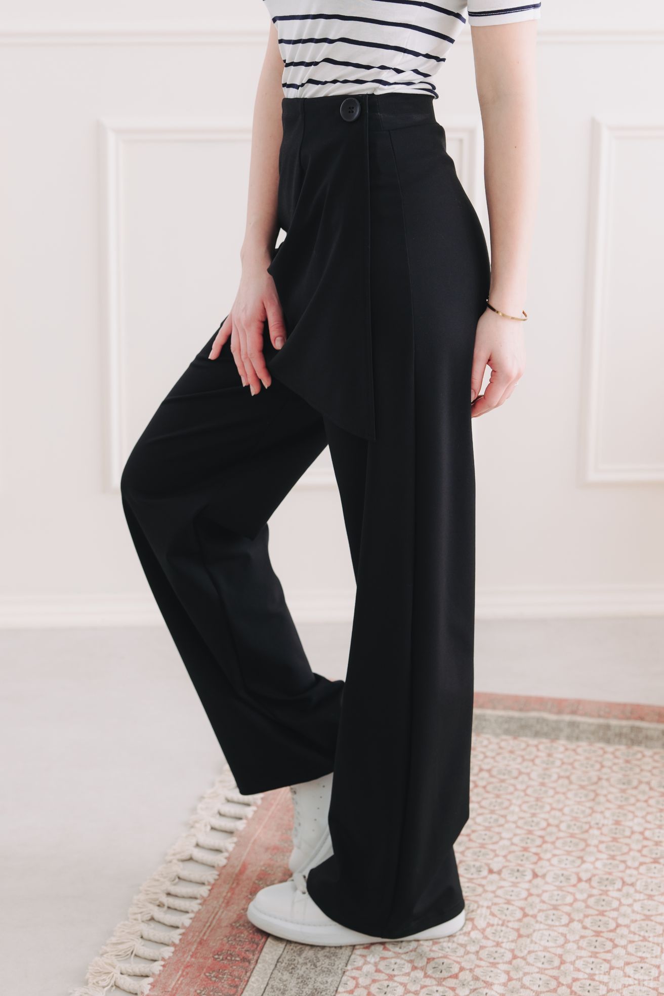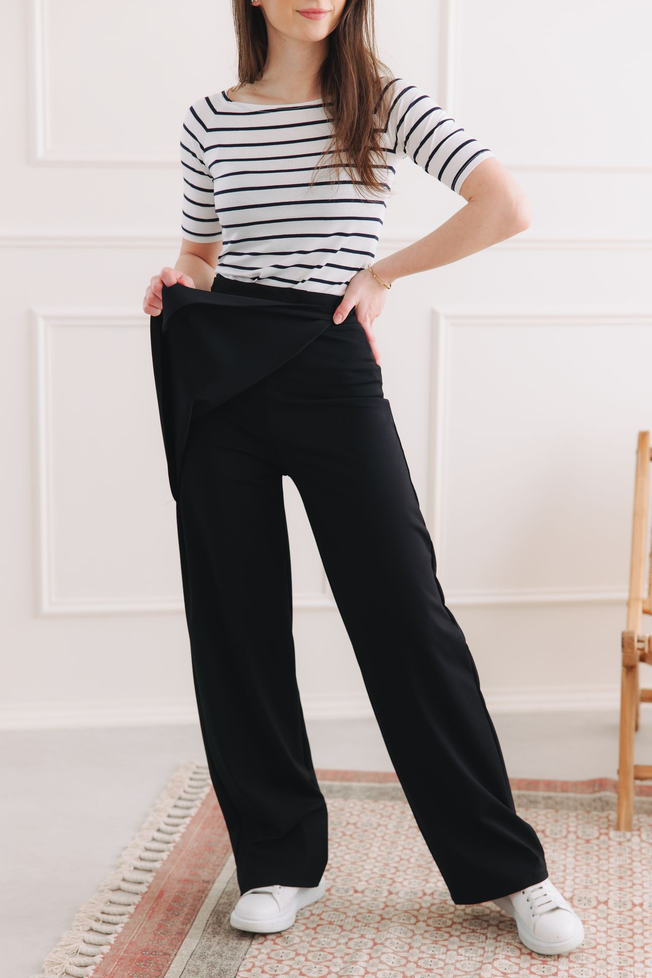 Kdepak, Shanti jsou symbolem absolutní svobody. Zapomeňte na zipy nebo knoflíky, které vás po dobrém obědě začnou tlačit. Kalhoty mají pružný pas, do kterého prostě vklouznete jako do oblíbených legín. A ten knoflík na boku? Ten je tam jen jako designový prvek, aby dodal outfitu šmrnc a eleganci, zatímco vy si užíváte maximální pohodlí.