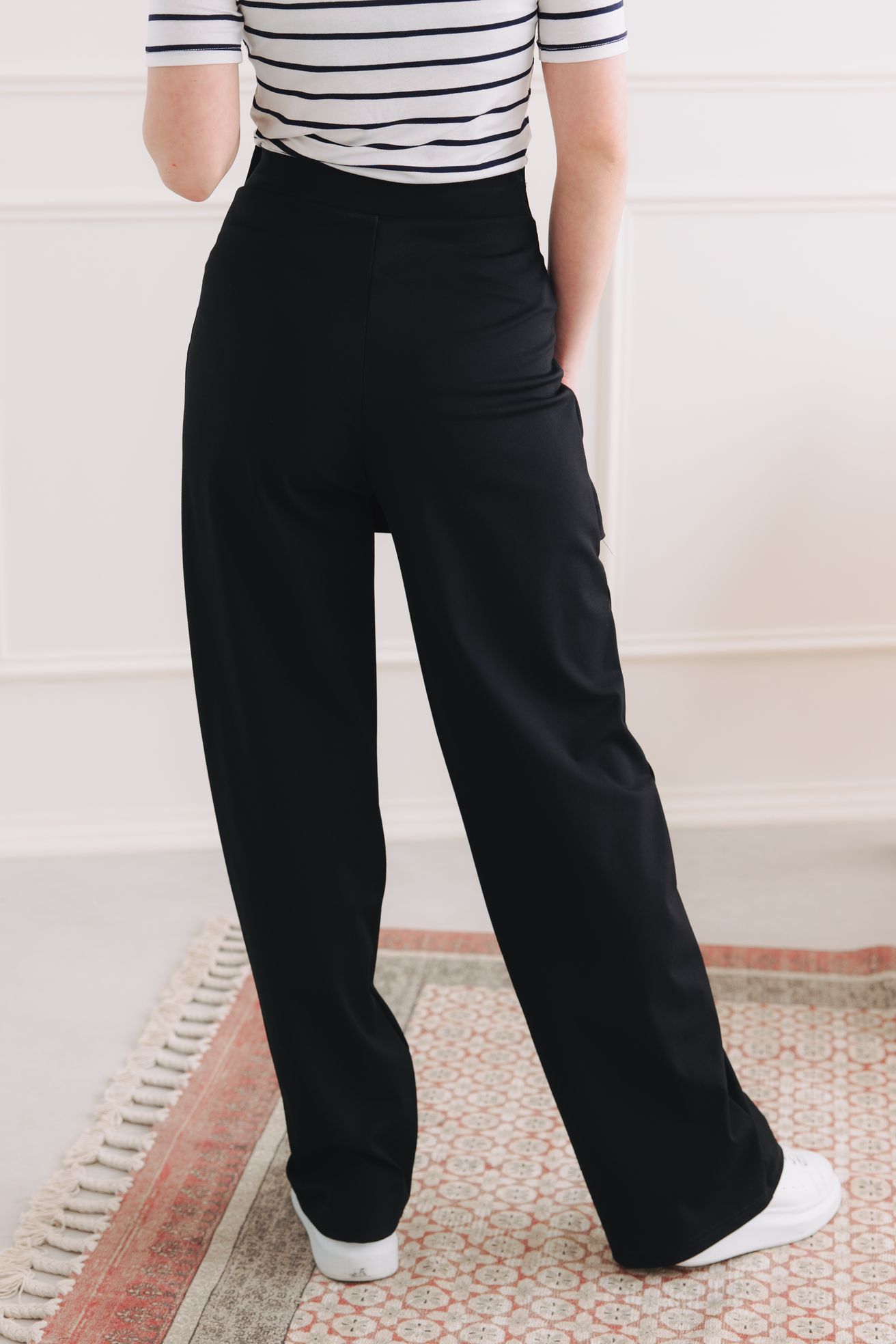 Shanti v sobě nezapřou praktičnost našich kousků. Mají jednu skrytou kapsu na boku, která je dostatečně prostorná na telefon nebo klíče, ale zároveň nijak nenarušuje tu hladkou a čistou siluetu kalhot. Je tam přesně ve chvíli, kdy ji potřebujete, a jinak o ní ani nevíte.