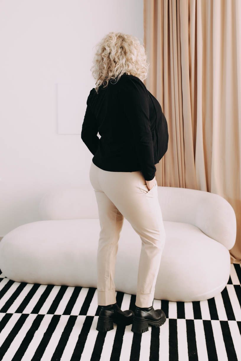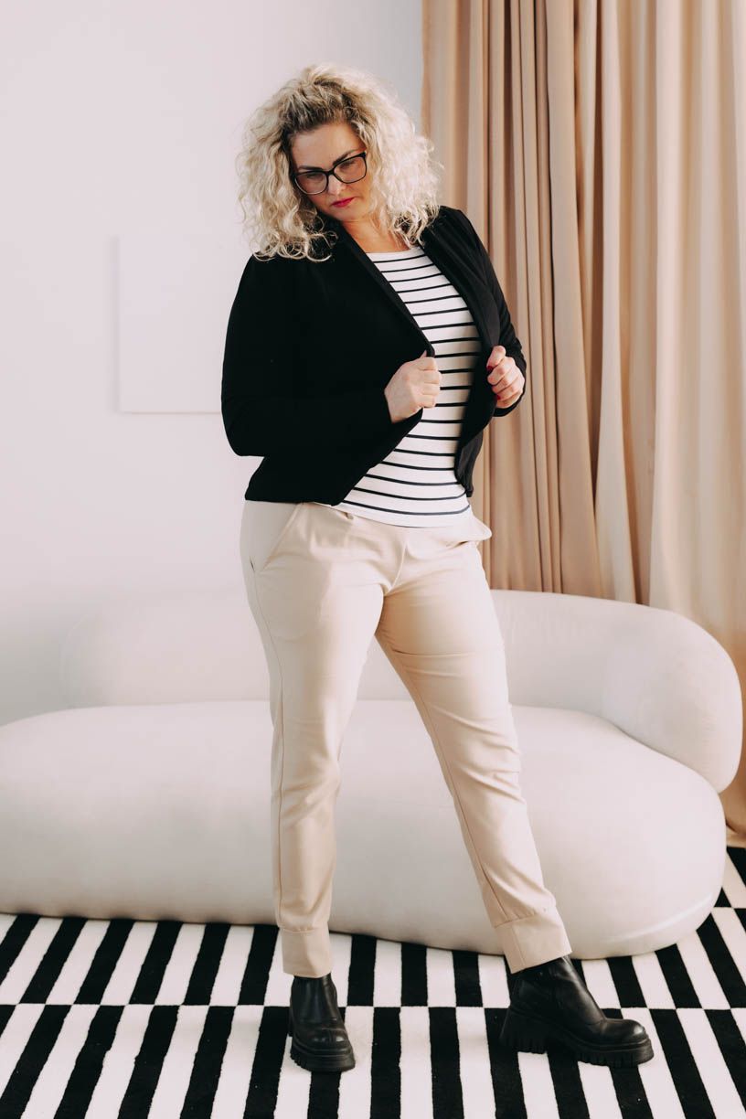 Shara hrají prim v kalhotové eleganci. Vysoký pas se širokou a efektně prošívanou gumou krásně zdůrazní křivky a budete s v nich cítit extrémně příjemně.