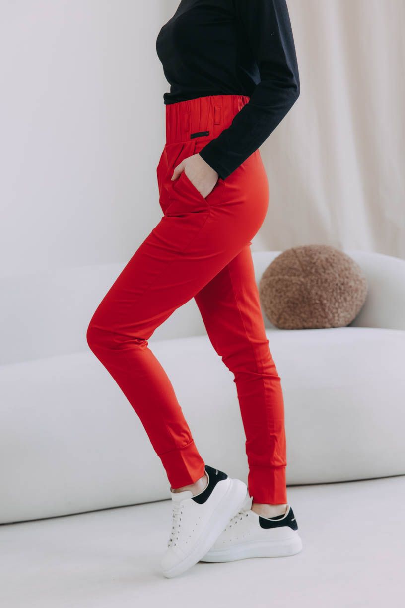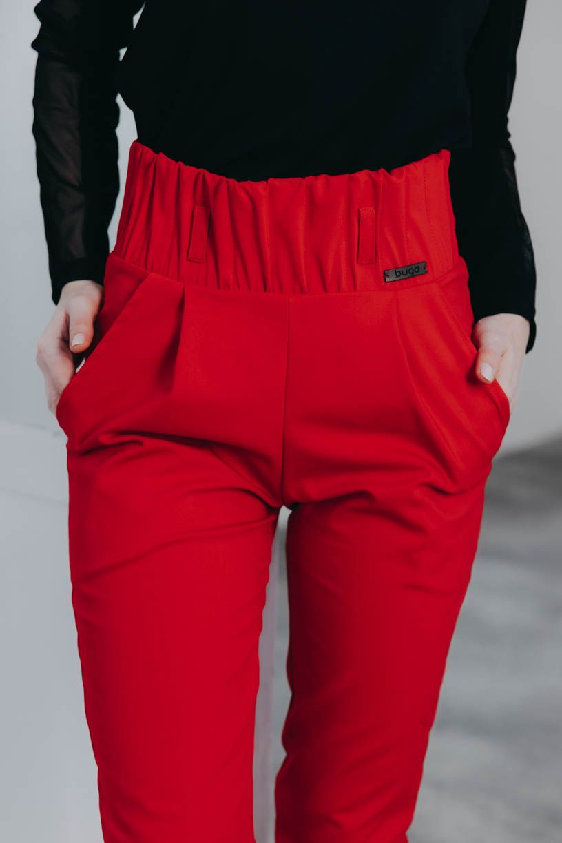 Shara hrají prim v kalhotové eleganci. Vysoký pas se širokou a efektně prošívanou gumou krásně zdůrazní křivky a budete s v nich cítit extrémně příjemně.